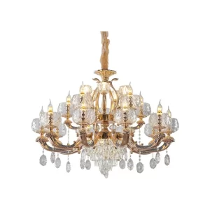 Đèn chùm nhiều tầng: Cấu trúc nhiều lớp ánh sáng, tạo cảm giác lộng lẫy, sang trọng, thường dùng cho không gian rộng lớn như sảnh, biệt thự, khách sạn.