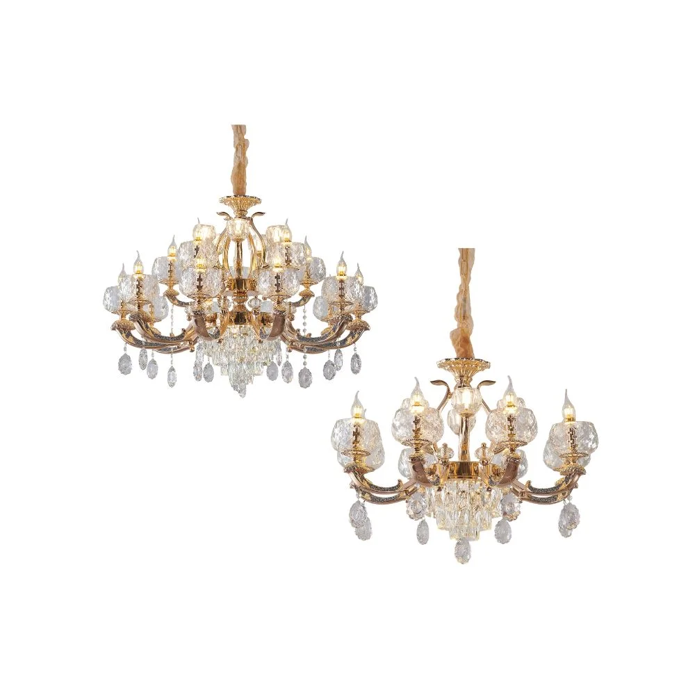 Đèn chùm nhiều tầng: Cấu trúc nhiều lớp ánh sáng, tạo cảm giác lộng lẫy, sang trọng, thường dùng cho không gian rộng lớn như sảnh, biệt thự, khách sạn.