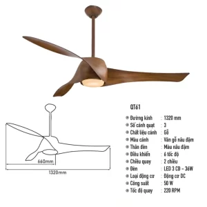 6 | Đèn quạt trần Dormunt QT42001 phong cách tân cổ điển | Giá gốc: Chỉ còn: 4.929.000đ (Giảm 40%) |