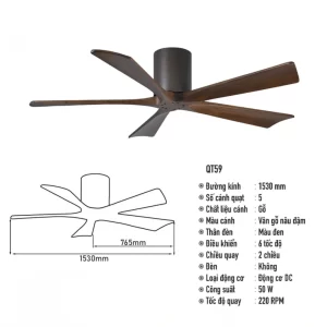 - Làm mát tự nhiên và êm ái: Quạt trần cánh gỗ mang luồng gió mềm mại, lan tỏa đều, với nhiều cấp độ gió tùy chỉnh, tạo cảm giác mát tự nhiên, dễ chịu.