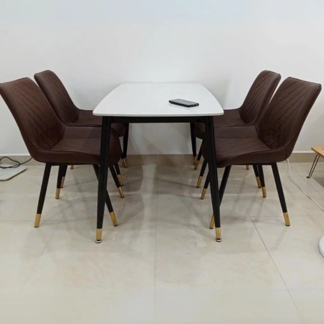 Chân bàn ăn CT002 với form chữ nhật gọn gàng, bốn chân thuôn nhẹ tạo cảm giác thanh thoát; đầu chân có chi tiết nhấn màu kim loại, tổng thể hiện đại – dễ phối với nhiều mặt đá/mặt gỗ.
