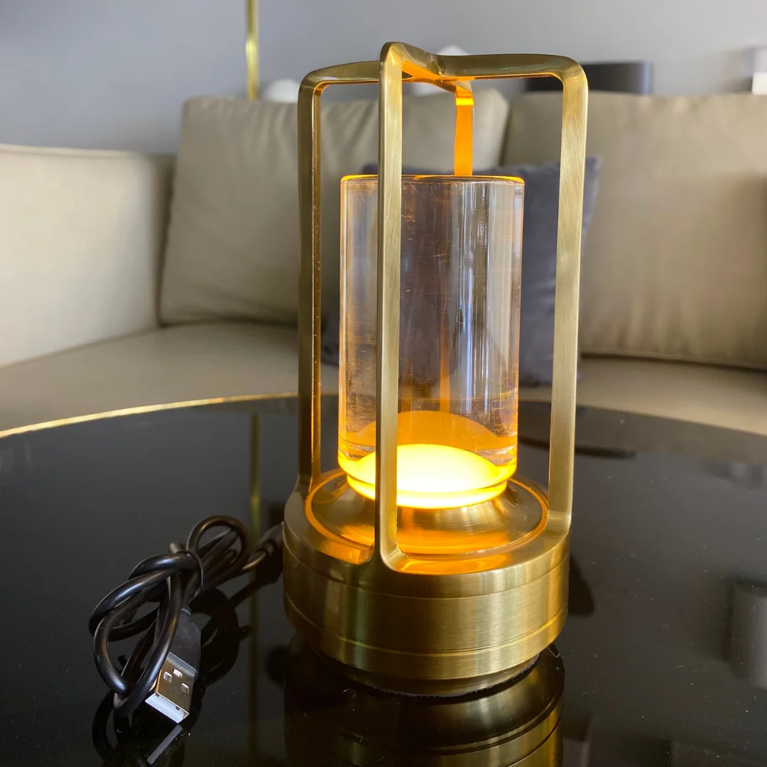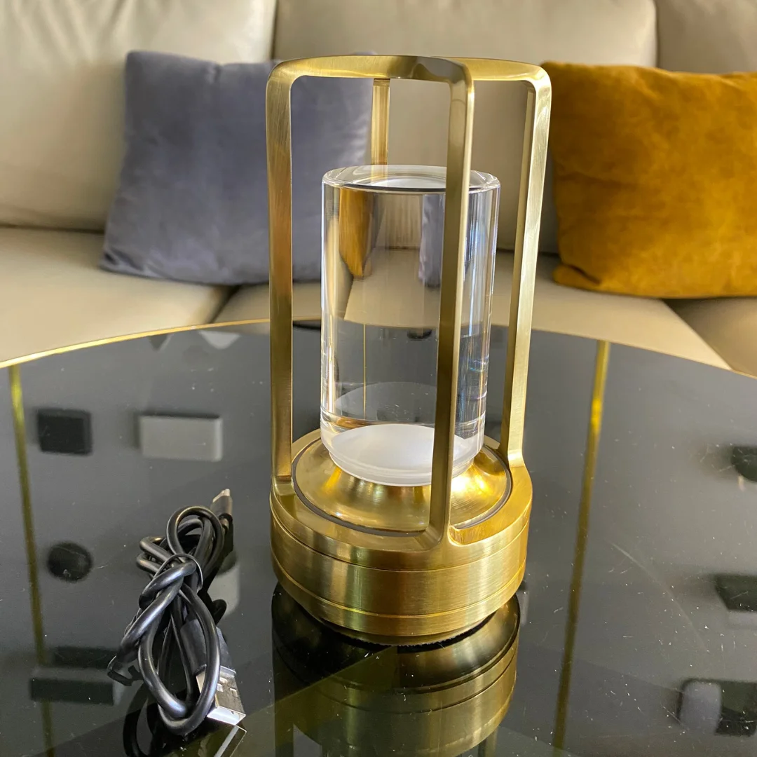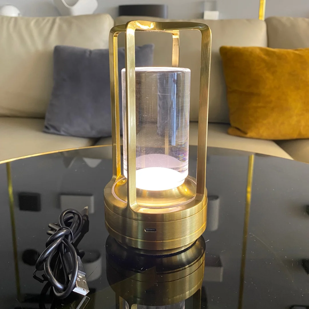 Phần thân đèn nhìn phù hợp với chất liệu kim loại hoàn thiện tông vàng đồng kết hợp ống đèn trong suốt, giúp sản phẩm vừa chắc chắn vừa có hiệu ứng ánh sáng đẹp mắt. Cách phối chất liệu này rất hợp với một mẫu đèn decor hiện đại vì vừa bền, vừa dễ vệ sinh, vừa mang lại cảm giác cao cấp hơn so với những mẫu đèn bàn thông thường.