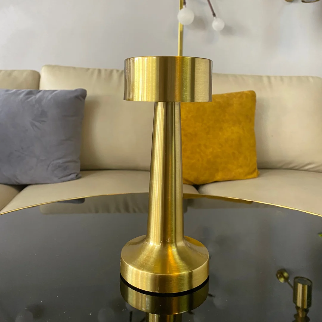 Đèn Bàn DB05 có thiết kế tối giản với phần đầu đèn tròn phẳng, thân đèn thanh mảnh và chân đế chắc gọn. Tổng thể sản phẩm tạo cảm giác hiện đại, sạch mắt và rất dễ đặt ở những vị trí nhỏ mà vẫn nổi bật. Màu vàng đồng giúp chiếc đèn nhìn sang hơn, phù hợp với nhiều không gian từ phòng ngủ, góc thư giãn đến bàn tiếp khách nhỏ.