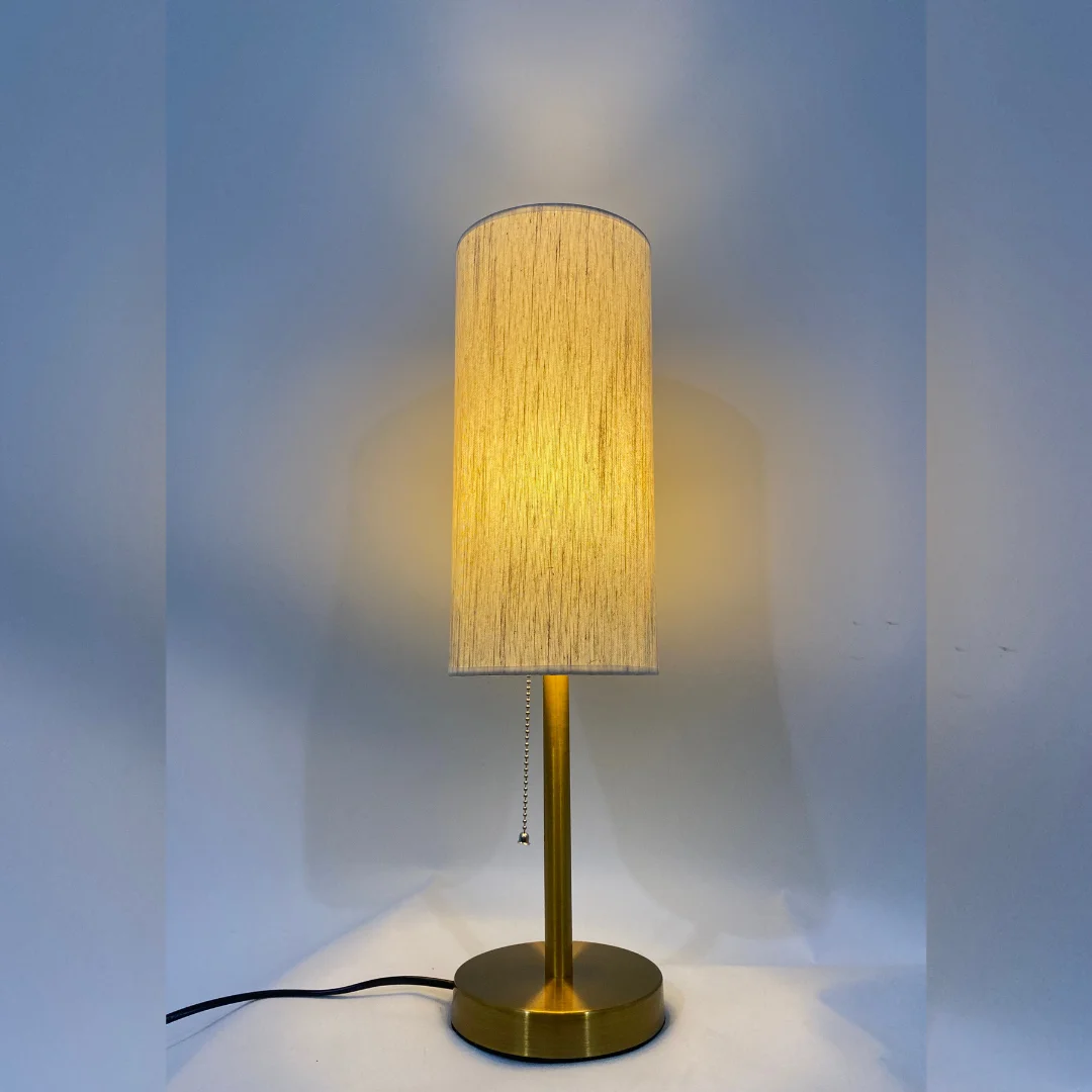 Phần thân đèn phù hợp với chất liệu kim loại hoàn thiện sắc vàng đồng, kết hợp cùng chao vải hoặc giả vải sáng màu. Sự kết hợp này giúp tổng thể sản phẩm vừa chắc chắn, vừa giữ được vẻ sang nhẹ và dễ dùng trong nhiều phong cách nội thất. Chao vải cũng giúp ánh sáng tỏa ra dịu hơn, không gây gắt mắt khi sử dụng vào buổi tối.