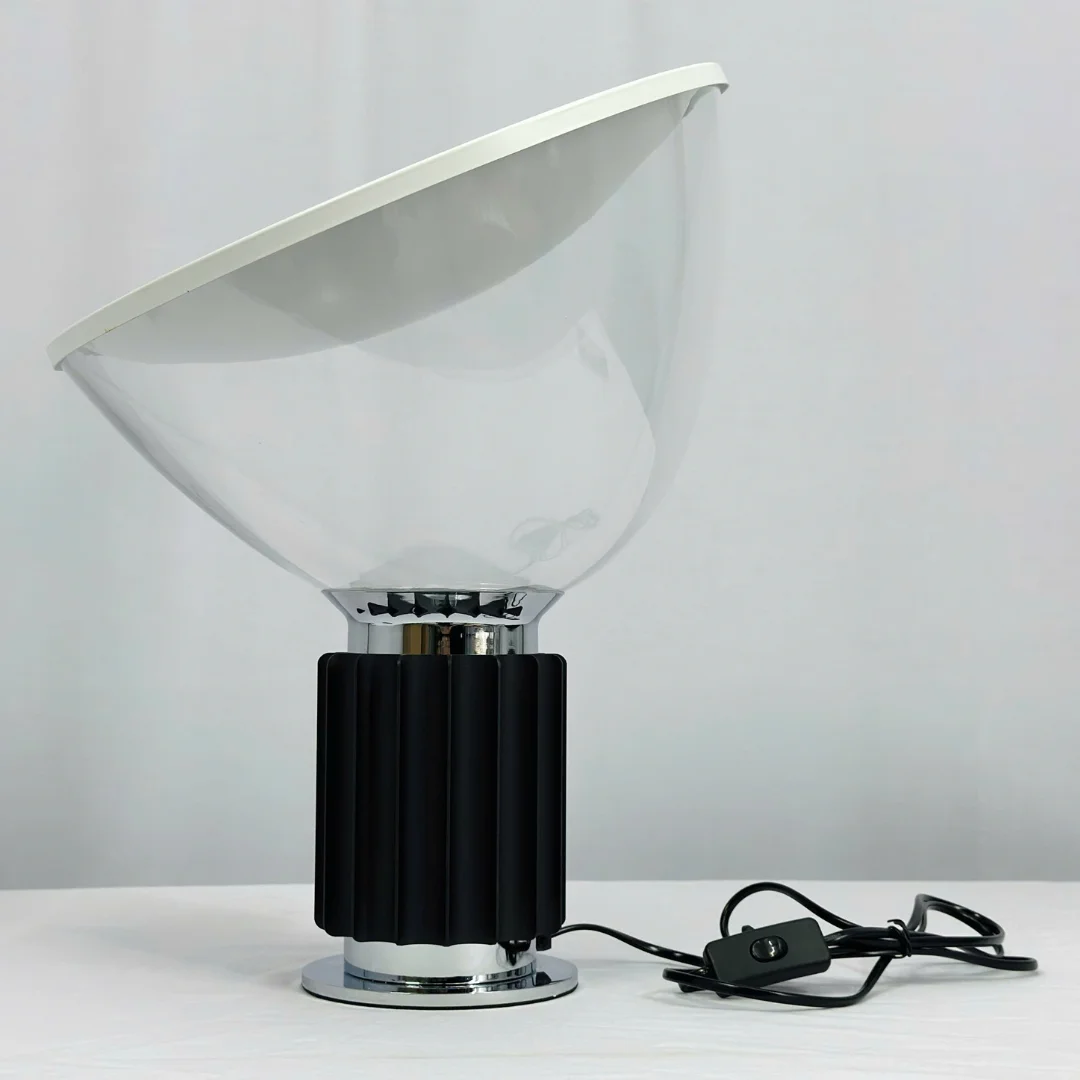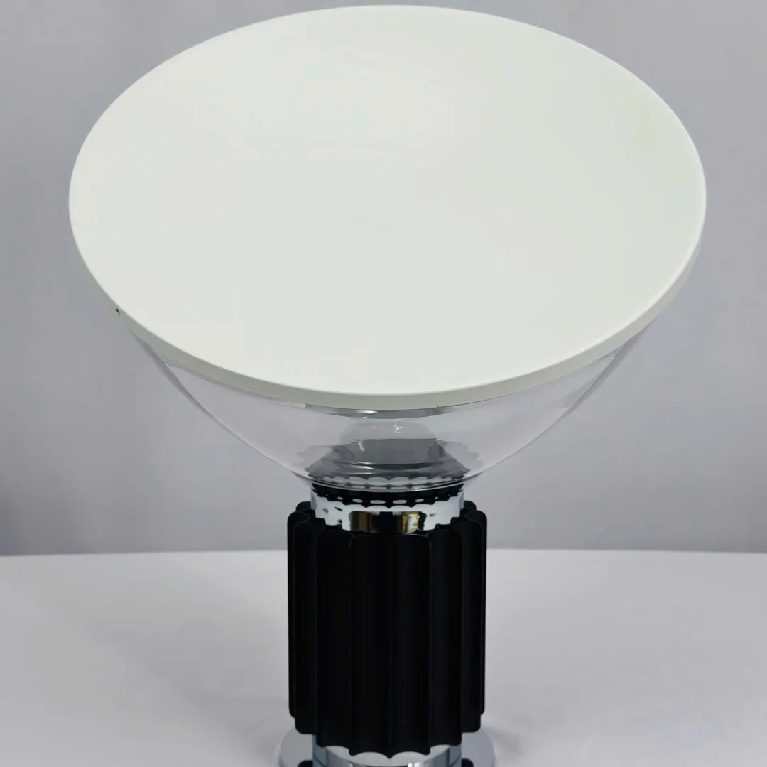 Đèn Bàn DB203 nổi bật với chao đèn lớn dạng bát, đặt nghiêng nhẹ để ánh sáng hắt lên trần và lan tỏa ra xung quanh. Kiểu hắt sáng này tạo cảm giác mềm mắt, phù hợp dùng buổi tối hoặc khi cần ánh sáng nền thư giãn. Tông trắng của chao kết hợp phần thân màu đen giúp tổng thể nhìn sang, sạch và dễ phối với nhiều kiểu nội thất.