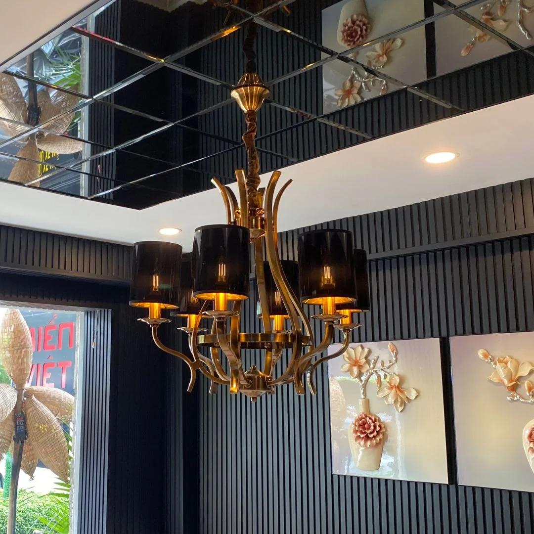 Khung đèn được làm từ hợp kim cao cấp, có độ bền vượt trội, chống gỉ sét và giữ màu lâu dài theo thời gian. Chất liệu này không chỉ đảm bảo độ chắc chắn mà còn góp phần tôn lên vẻ đẹp sang trọng, đẳng cấp cho không gian sống.