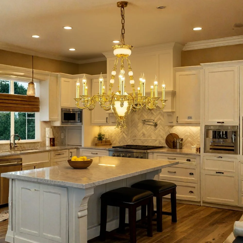 Đèn Chùm DCD8121 là một trong những mẫu đèn trang trí nổi bật tại 127 HOME, được thiết kế theo phong cách châu Âu cổ điển pha chút hiện đại, mang đến vẻ đẹp quyền quý và đẳng cấp cho không gian sống. Mỗi chi tiết của đèn được chế tác tỉ mỉ, từ phần thân đồng sáng bóng đến chụp nến tinh xảo, giúp ánh sáng lan tỏa ấm áp và sang trọng. Đây là lựa chọn lý tưởng cho phòng khách, sảnh đón, biệt thự hoặc nhà hàng cao cấp nơi cần sự tinh tế và ấn tượng trong từng ánh nhìn.