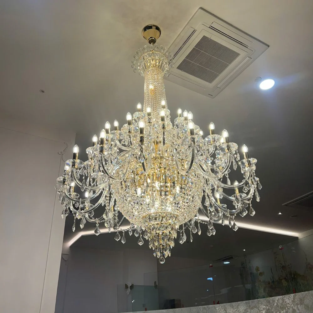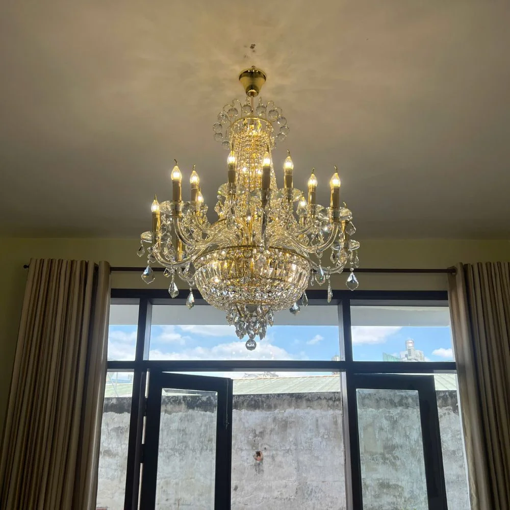 Toàn bộ khung đèn được làm từ hợp kim cao cấp, đảm bảo độ bền và sự chắc chắn theo thời gian. Mỗi mẫu đều sử dụng pha lê K9 cao cấp, được cắt gọt tinh xảo giúp phản chiếu ánh sáng lung linh, tạo hiệu ứng rực rỡ khi bật đèn. Hệ thống chiếu sáng bố trí thông minh với bóng E14 ở phần tay và lớp pha lê, mang đến ánh sáng tỏa đều, mềm mại và không chói.