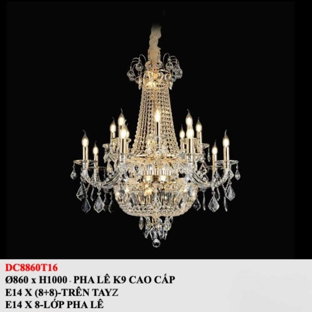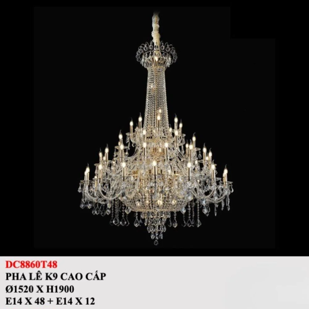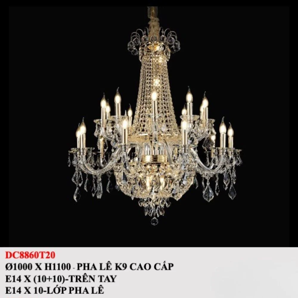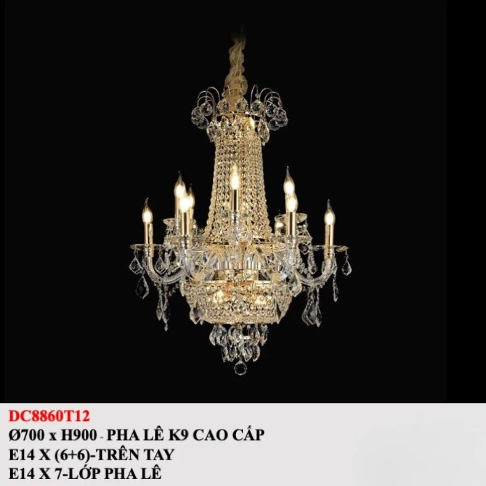 Đèn Chùm Nến Pha Lê DC8860 được thiết kế theo phong cách chùm nến pha lê nhiều tầng sang trọng, mang đến vẻ đẹp nổi bật và đẳng cấp cho không gian sống. Bộ sưu tập gồm các mẫu DC8860T20, DC8860T48, DC8860T12 và DC8860T16, với kích thước đa dạng từ D700 x H900 mm đến D1520 x H1900 mm, phù hợp cho nhiều không gian từ phòng khách, sảnh lớn đến biệt thự cao trần.