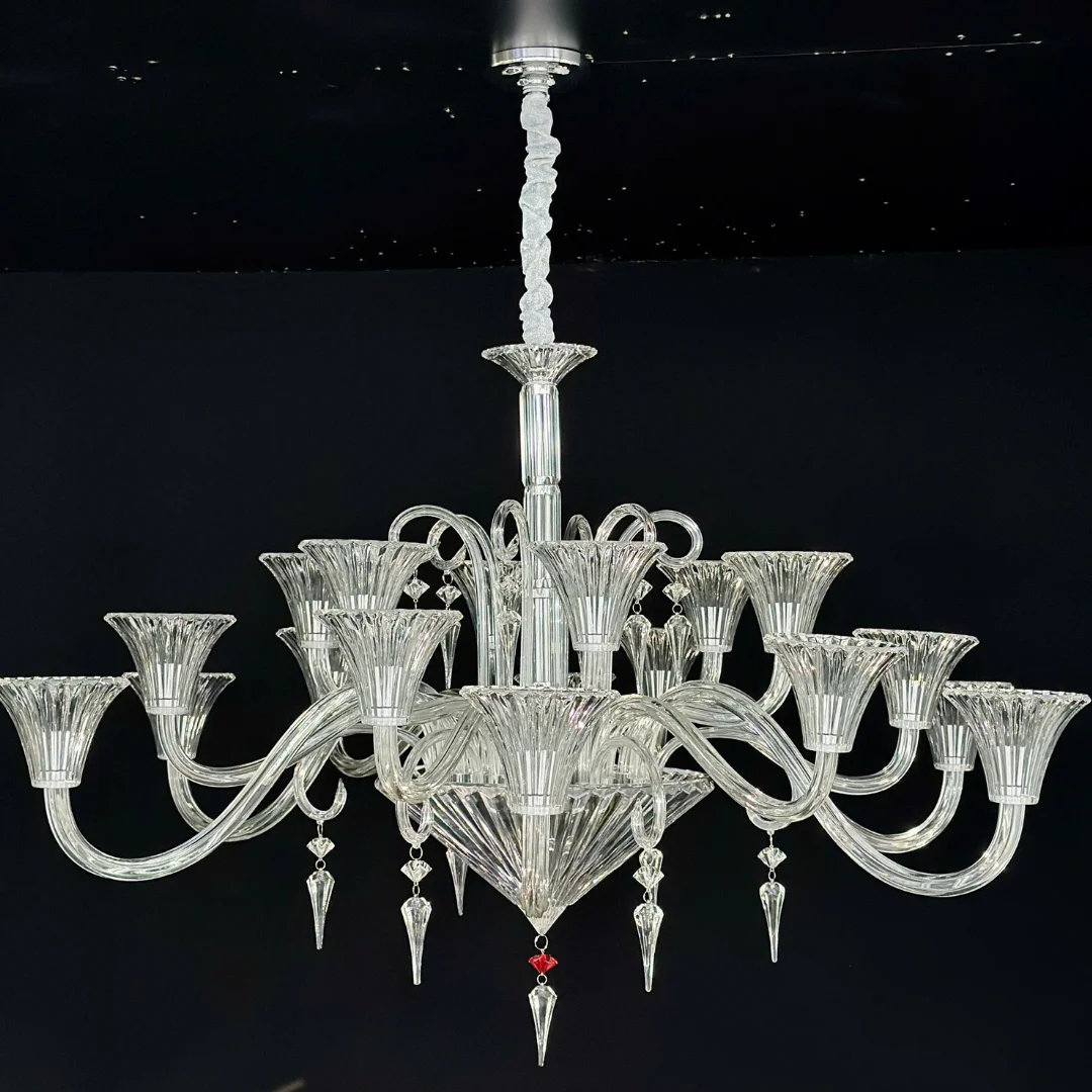 Các chi tiết thả trang trí phía dưới góp phần tăng hiệu ứng bắt sáng, đặc biệt hợp với không gian trần cao hoặc khu vực cần điểm nhấn nổi bật. Tùy diện tích phòng, bạn có thể chọn size nhỏ để treo bàn ăn/phòng khách vừa, hoặc size lớn để đặt ở sảnh và phòng khách rộng nhằm tạo cảm giác “đầy” và sang hơn.