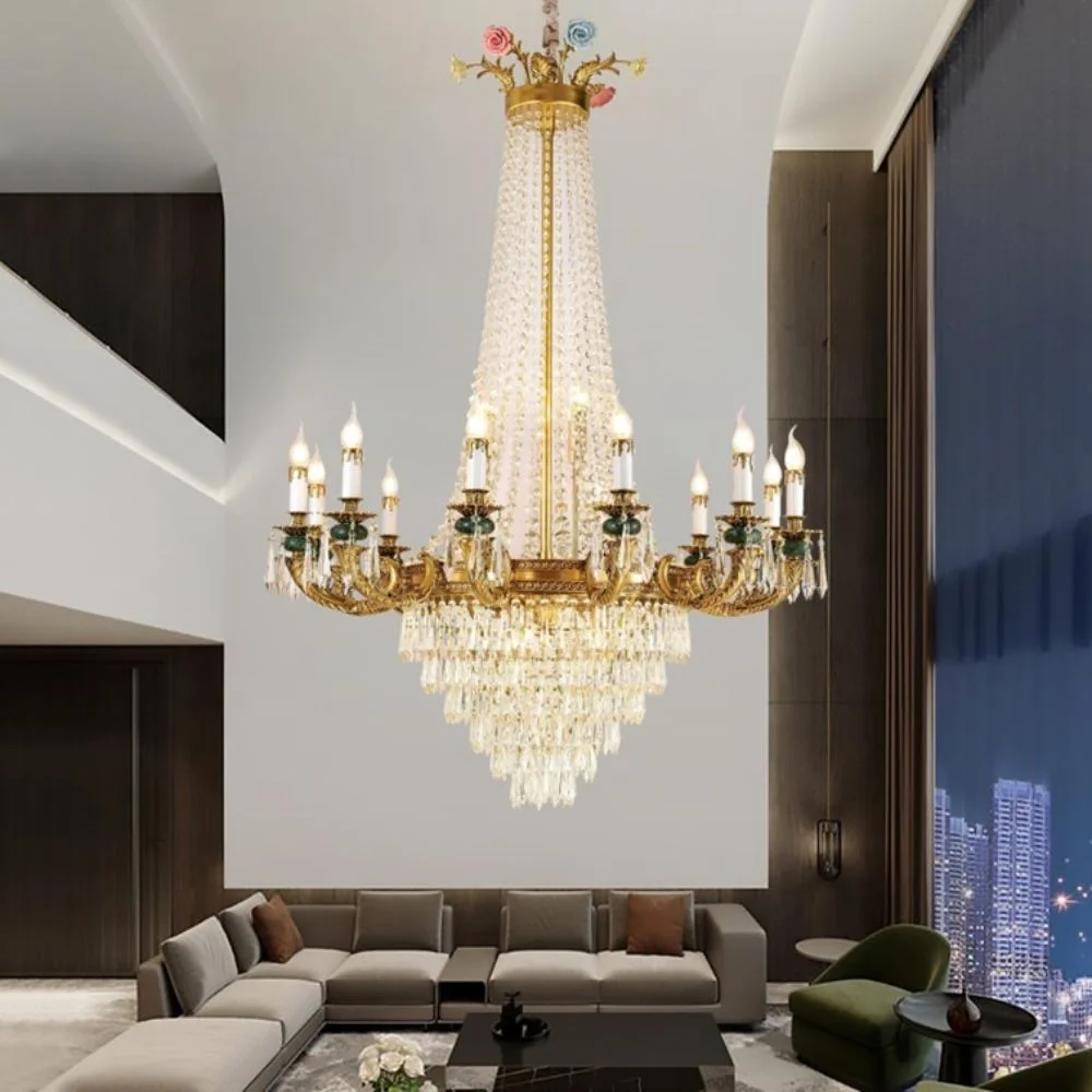 Đèn Chùm Pha Lê DC9047 gây ấn tượng với thiết kế nhiều tầng sang trọng, tựa như thác pha lê lấp lánh giữa không gian. Các tay đèn được uốn cong mềm mại, nâng đỡ từng bóng nến tinh tế, tạo nên vẻ đẹp hài hòa giữa cổ điển và hiện đại. Sự cân đối trong bố cục giúp chiếc đèn không chỉ là nguồn sáng mà còn là điểm nhấn nghệ thuật hoàn hảo cho phòng khách, đại sảnh hay không gian tiếp khách cao cấp.