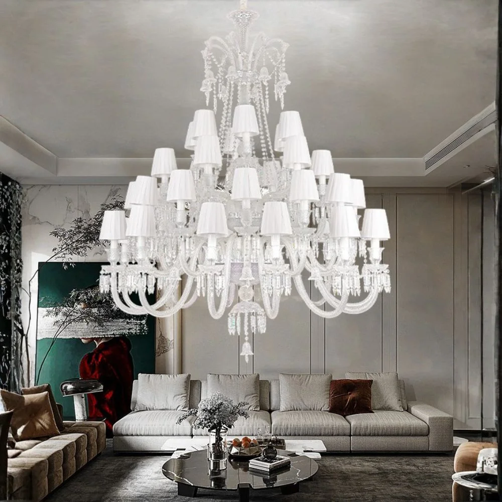 Phần thân đèn được gia công kỹ lưỡng, từng chi tiết được hoàn thiện tỉ mỉ. Chất liệu pha lê cao cấp mang đến độ trong suốt và khả năng phản chiếu ánh sáng nổi bật. Khi đèn bật sáng, các hạt pha lê tỏa sáng lấp lánh, tạo hiệu ứng ánh sáng sống động, góp phần làm nổi bật không gian nội thất và mang đến cảm giác ấm áp, gần gũi.