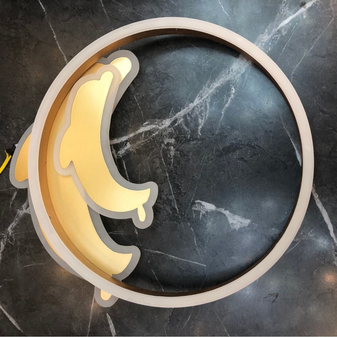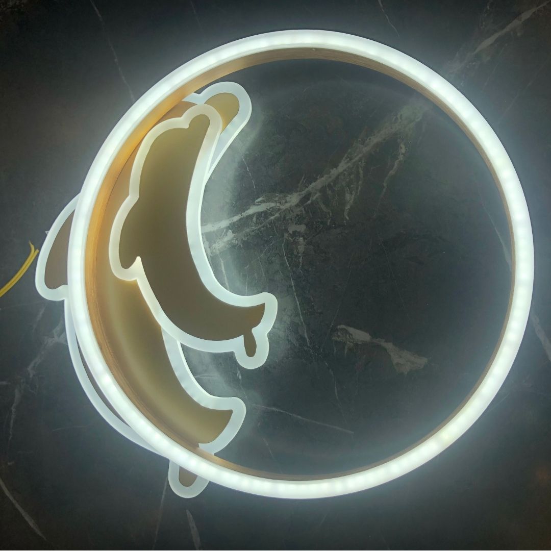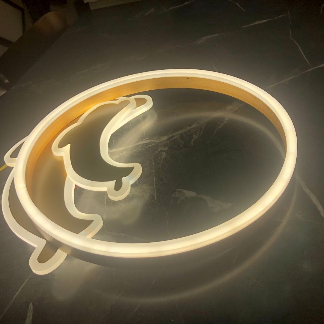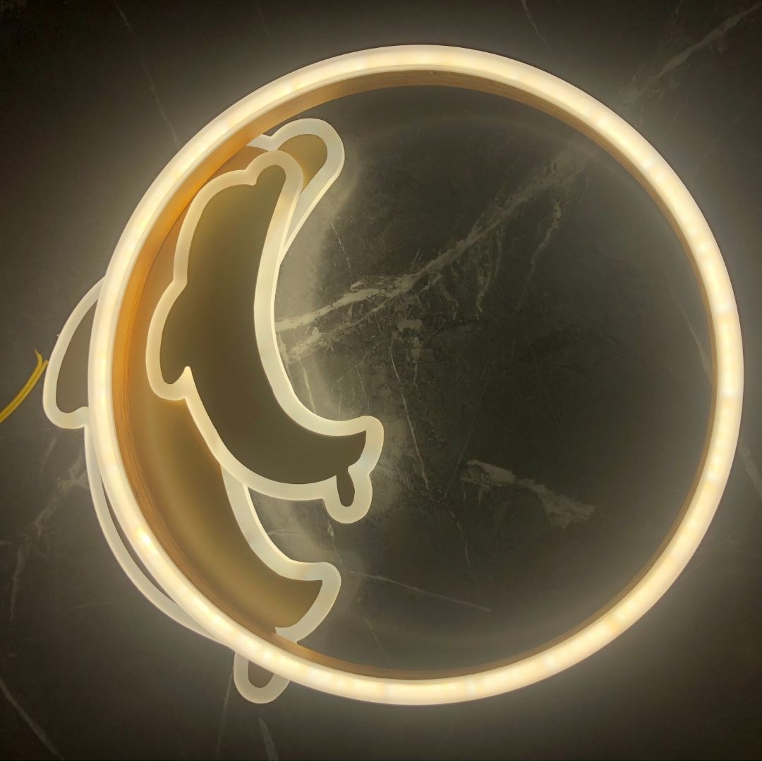 Đèn Ốp Trần Mica OTA8870 nhấn mạnh họa tiết cá heo nổi khối trong vòng sáng oval, viền LED liền mạch cho hiệu ứng ánh sáng đều và nổi bật khi bật đèn. Khung kim loại sơn tĩnh điện chắc chắn, chống cong vênh; bề mặt mica trong mờ tán quang tốt, giảm chói và dễ lau chùi. Tổ hợp kim loại + mica giúp đèn bền màu, an toàn và giữ form đẹp theo thời gian.