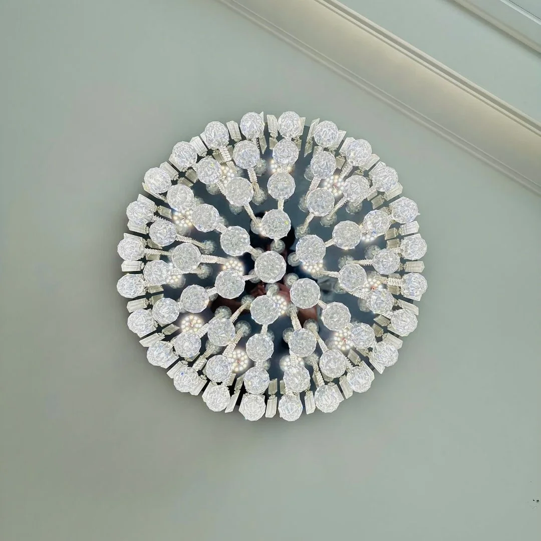 - Sang trọng tức thì: pha lê trắng khúc xạ mạnh, tạo điểm nhấn trung tâm cho phòng khách.