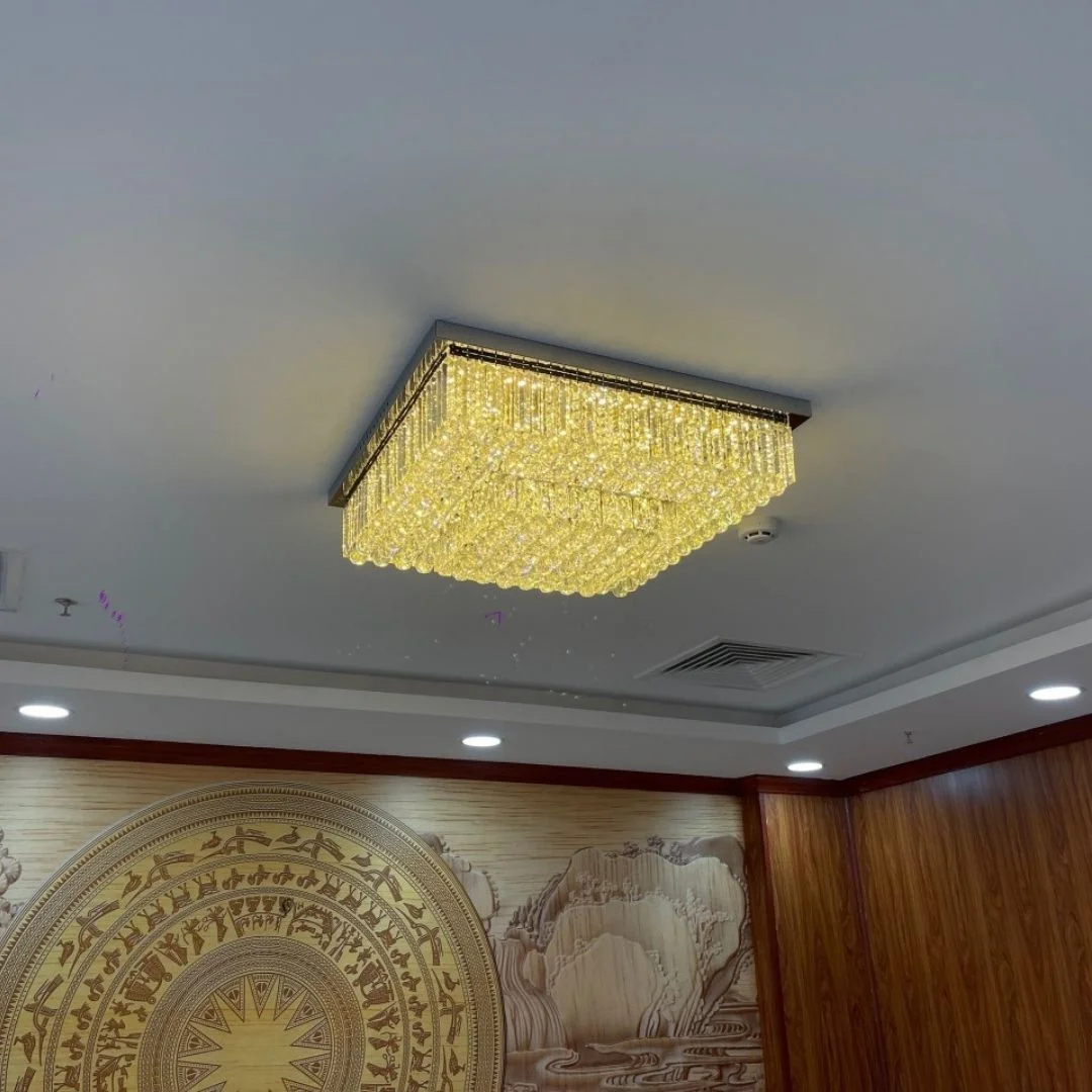 Đèn Ốp Trần Pha Lê OTPL40406 nổi bật với kiểu dáng khối vuông đa tầng, viền pha lê hạt và thanh dọc xếp lớp tạo hiệu ứng “thác sáng” long lanh khi bật đèn; tỷ lệ cạnh hài hòa giúp đèn vẫn thanh thoát ngay cả ở kích thước lớn. Hệ LED 3 chế độ cho phép chuyển nhanh giữa ánh sáng ấm áp – trung tính – trắng sáng, linh hoạt cho tiếp khách, dùng bữa hay thư giãn. Khung kim loại phủ hoàn thiện chắc chắn, chống cong vênh; pha lê cắt cạnh trong trẻo phản xạ ánh sáng đẹp mắt và bền màu theo thời gian. Sự kết hợp vật liệu cao cấp này vừa tăng tuổi thọ, vừa nâng tầm thẩm mỹ tổng thể cho không gian, khiến đèn ốp trần pha lê OTPL40406 trở thành lựa chọn sáng giá cho phòng khách, sảnh hay khu vực đón tiếp.