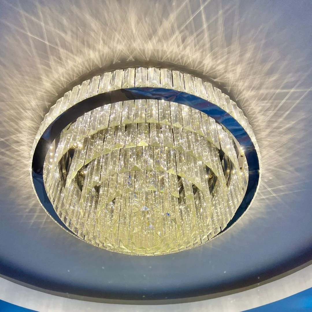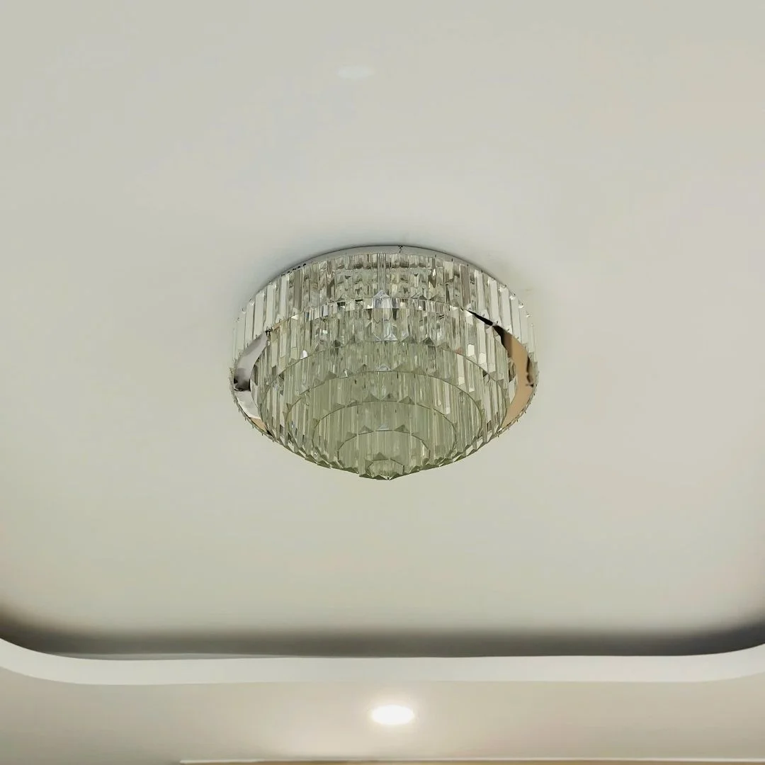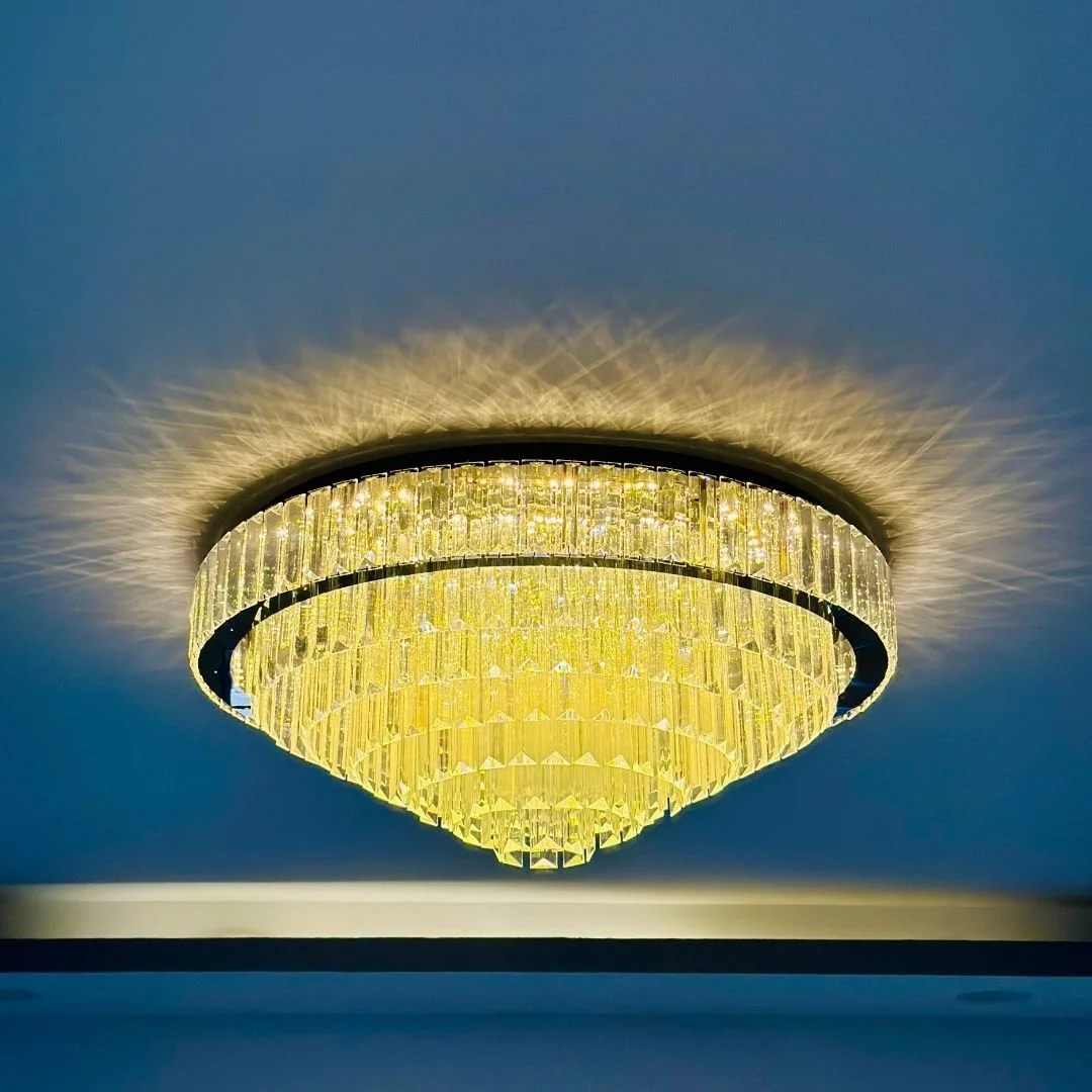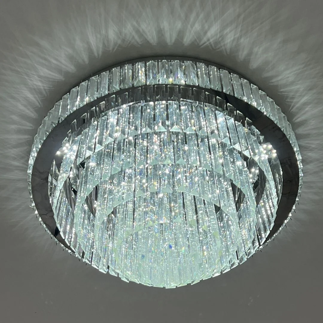 - Pha lê cao cấp phản quang mạnh → không gian rực rỡ, tạo điểm nhấn đẳng cấp cho phòng khách/ sảnh.