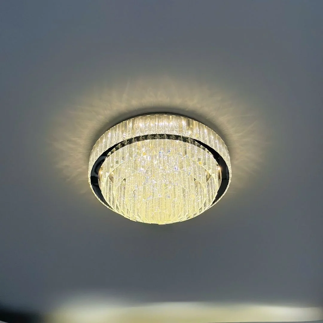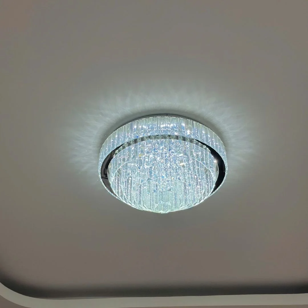 Đèn Ốp Trần Pha Lê OTPL42 mang dáng tròn cân đối, phần viền kim loại thanh lịch ôm trọn thân đèn, bên trong là tầng pha lê xếp lớp hình thác đổ tạo hiệu ứng phản chiếu lung linh khi bật LED 3 chế độ (trắng/ vàng/ trung tính). Khung kim loại sơn tĩnh điện bền bỉ, chống gỉ; hạt pha lê cắt giác trong suốt cho ánh sáng trong trẻo, sang trọng và an toàn khi sử dụng. Tổng thể thiết kế hài hòa, phù hợp phong cách hiện đại – tân cổ điển.