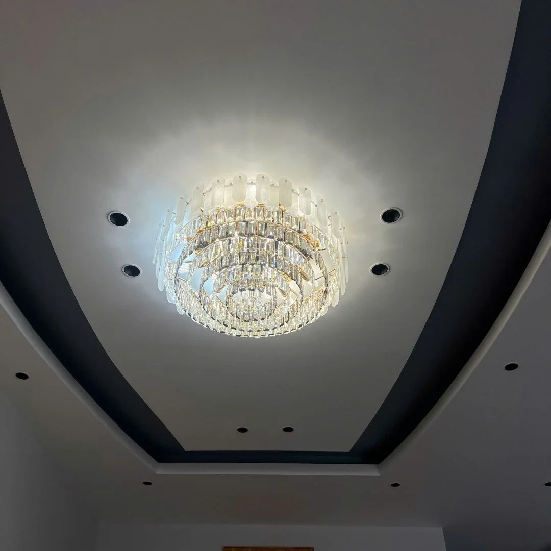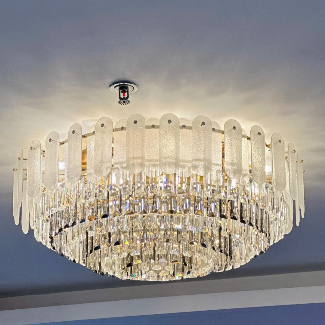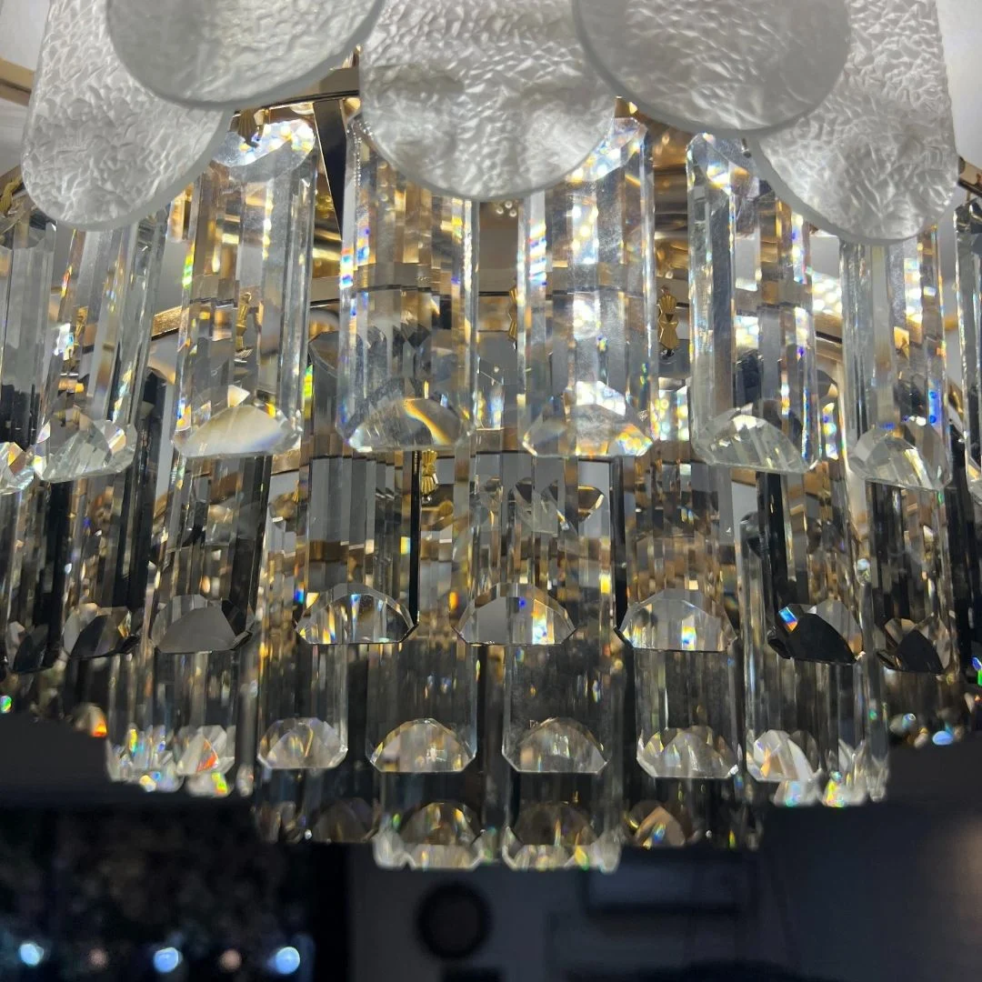 - Pha lê cắt mài cao cấp → hiệu ứng ánh sáng lung linh, nâng tầm thẩm mỹ không gian.
