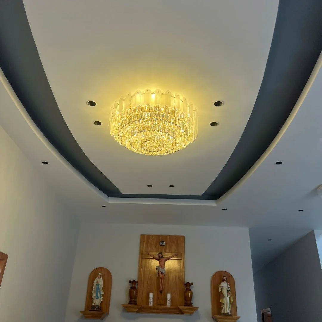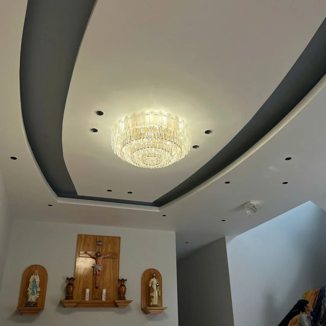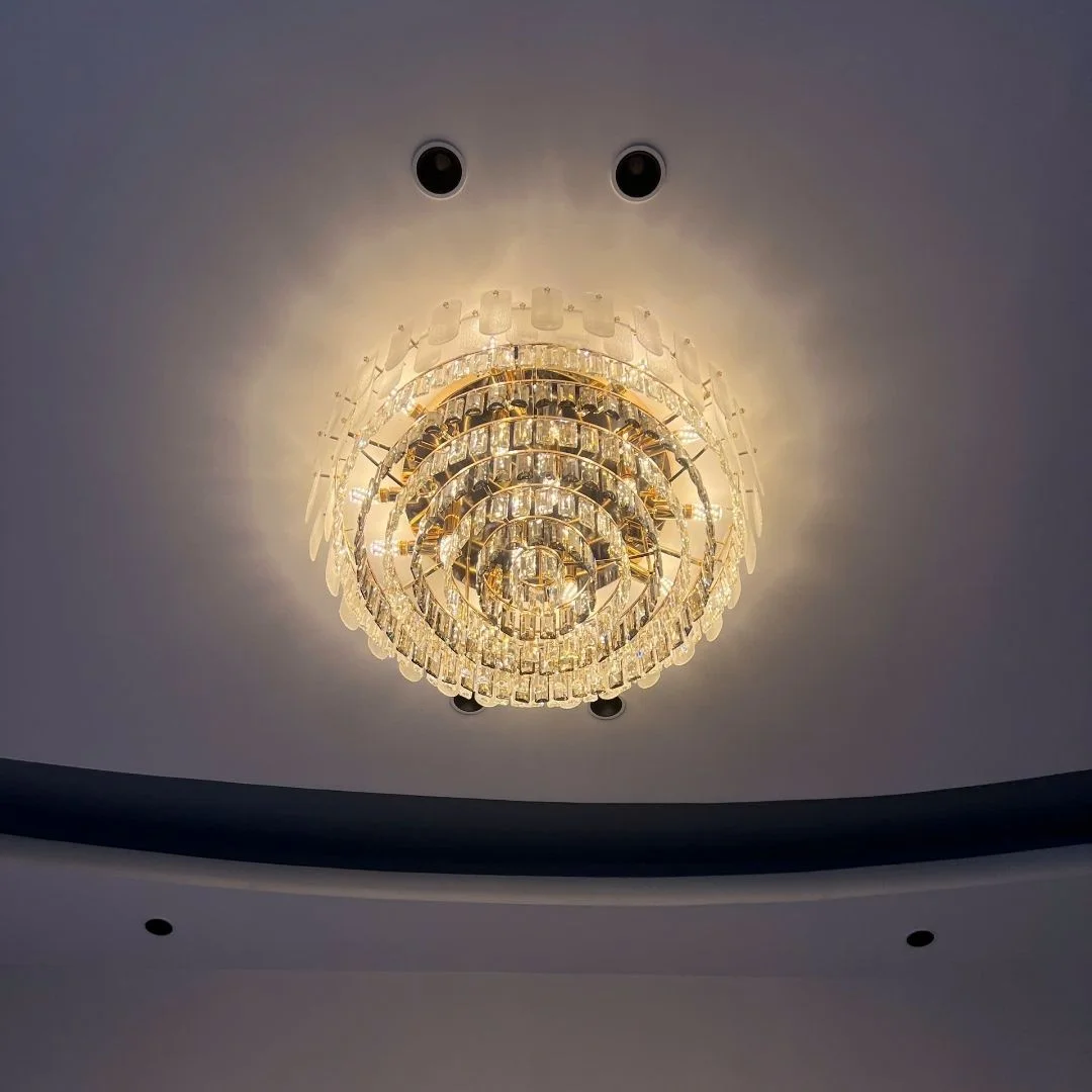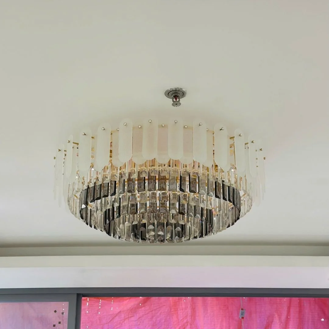 - Pha lê cắt mài cao cấp → hiệu ứng ánh sáng lung linh, nâng tầm thẩm mỹ không gian.