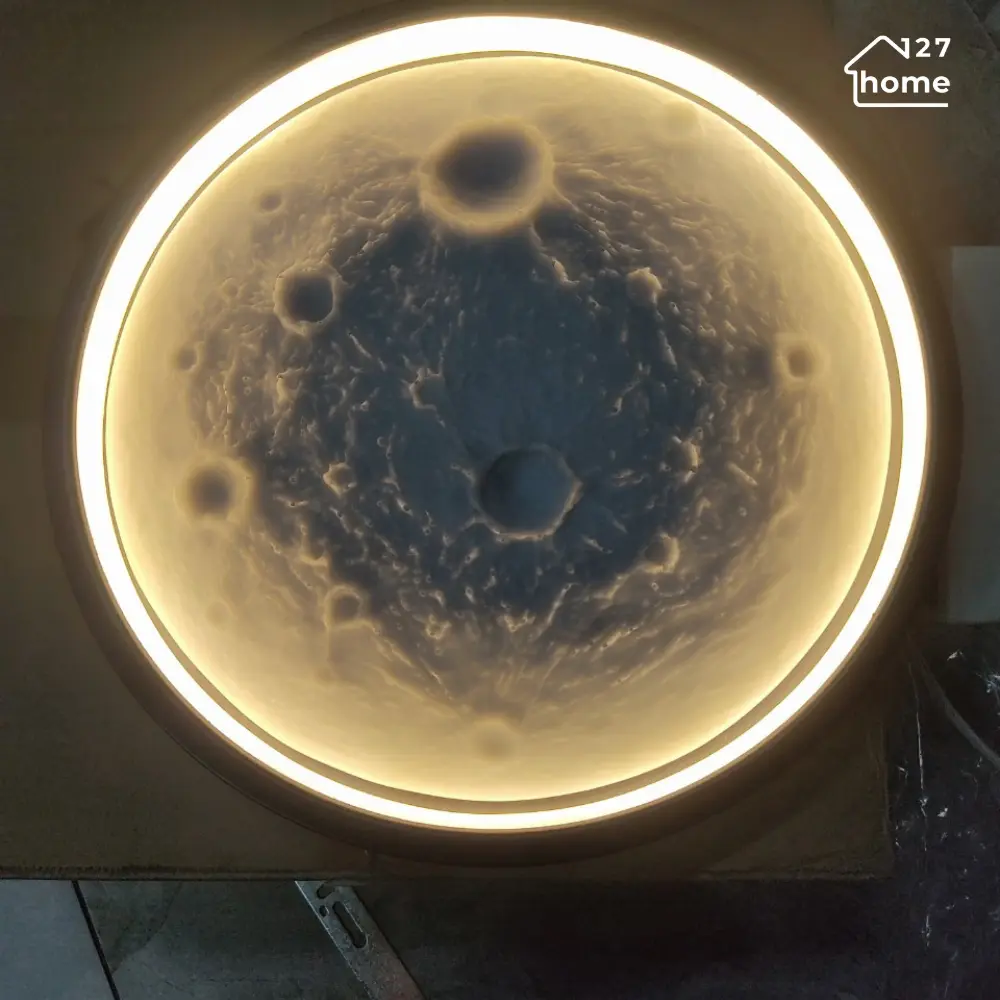 Ứng dụng đa dạng: Có thể sử dụng trong phòng khách, phòng ngủ, hành lang, phòng làm việc hoặc các không gian dịch vụ như quán café, khách sạn. Khi thắp sáng, đèn tạo cảm giác như một mặt trăng đang tỏa sáng.