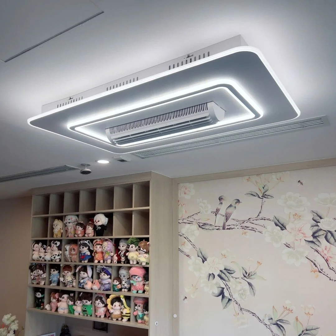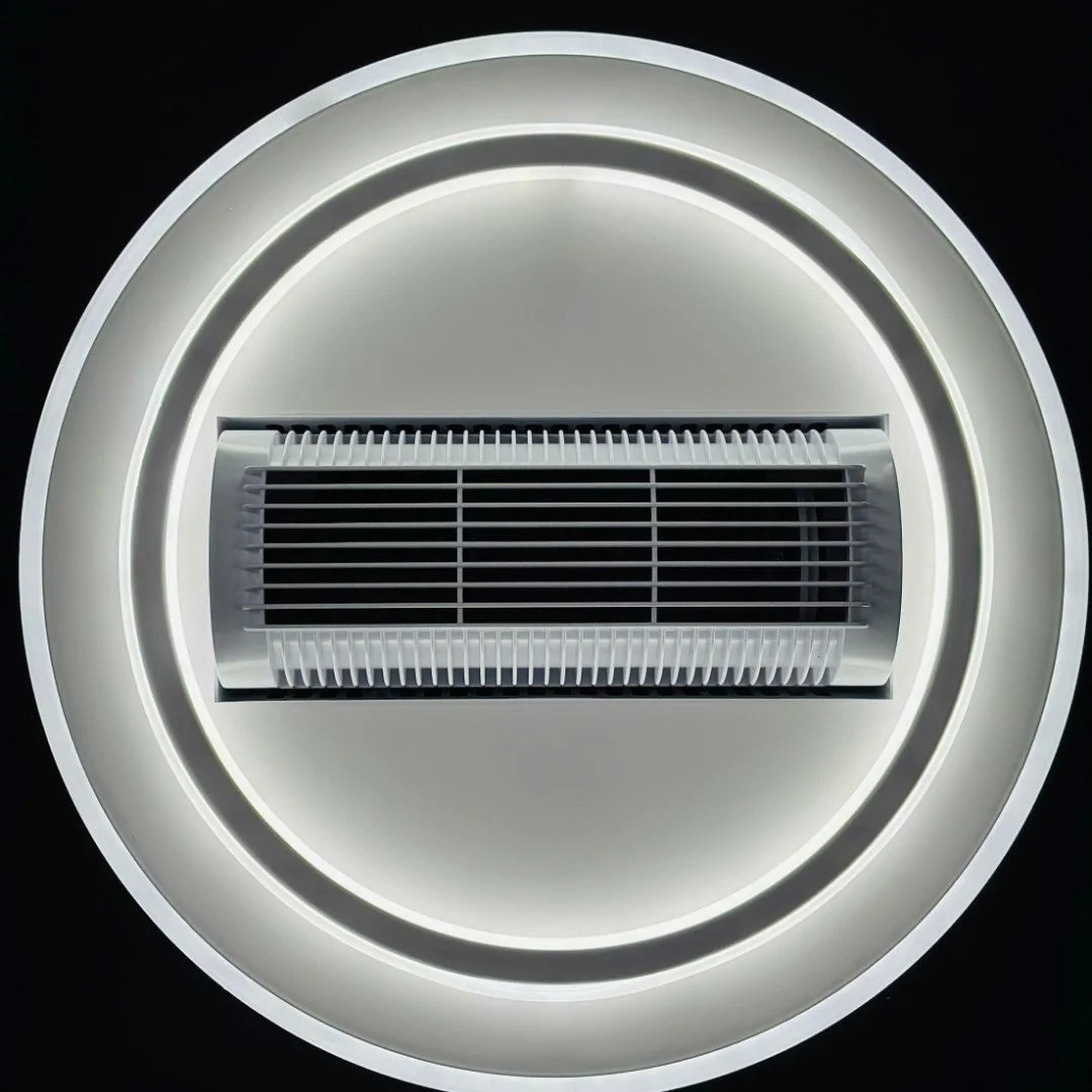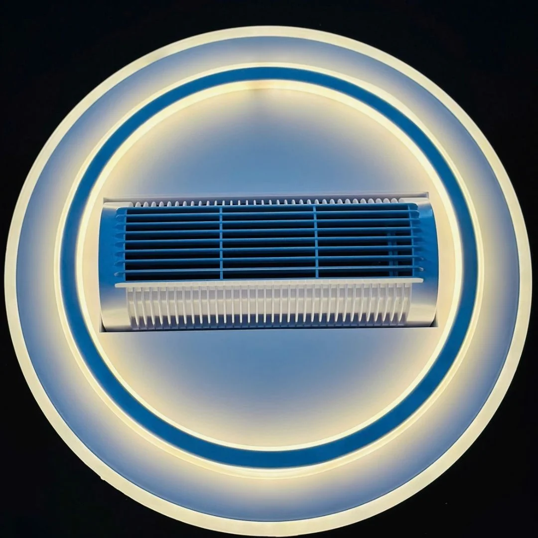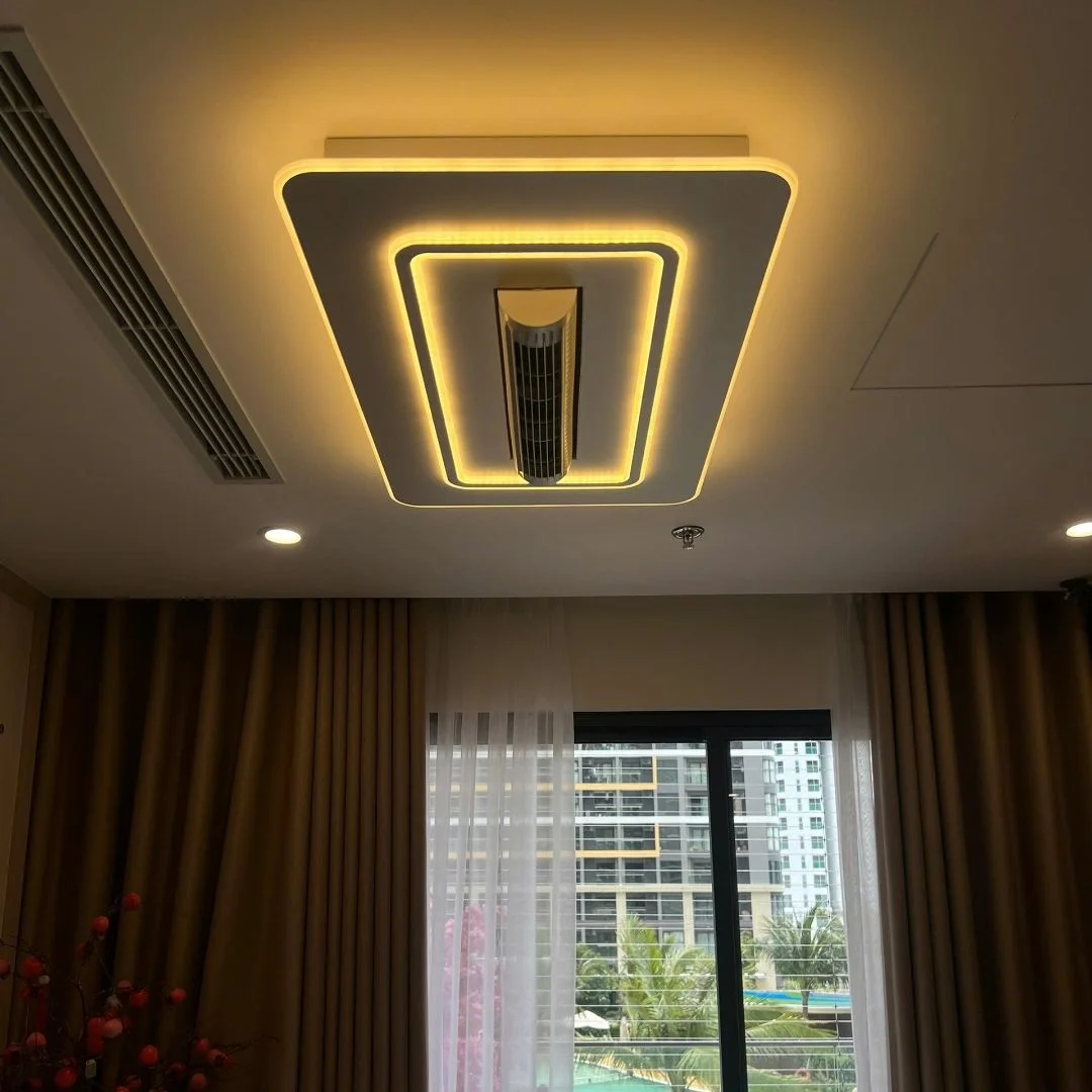 Đèn Quạt Ốp Trần OTA43 có 3 kiểu dáng: tròn, vuông và chữ nhật, đồng bộ bởi các đường viền LED từng lớp tạo hiệu ứng ánh sáng mềm mắt. Cụm quạt gió ẩn ở trung tâm vận hành êm, không phá vỡ thẩm mỹ tổng thể. Thân kim loại sơn tĩnh điện chắc chắn chống gỉ; bề mặt mica khuếch tán ánh sáng đều, hạn chế chói lóa. Khi đổi LED 3 chế độ (trắng/vàng/trung tính), lớp viền phát sáng tạo chiều sâu hiện đại, phù hợp nhiều phong cách nội thất.