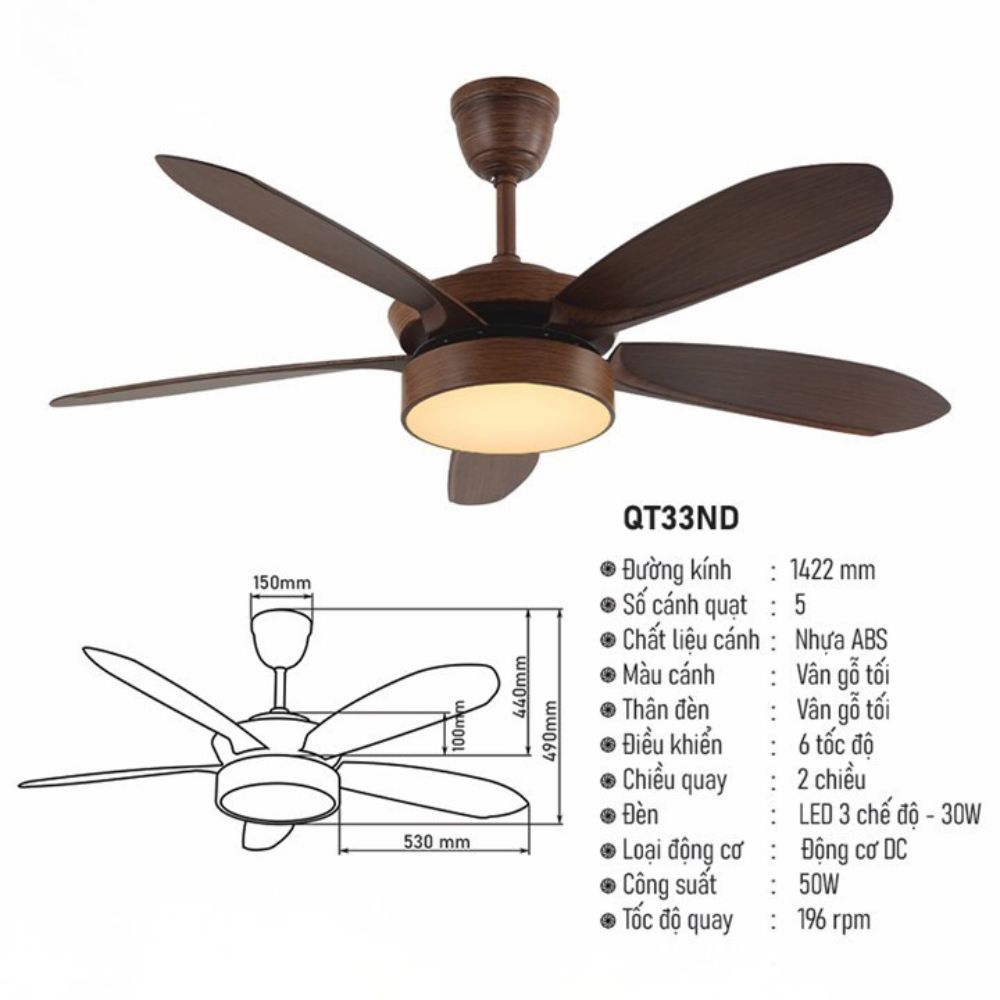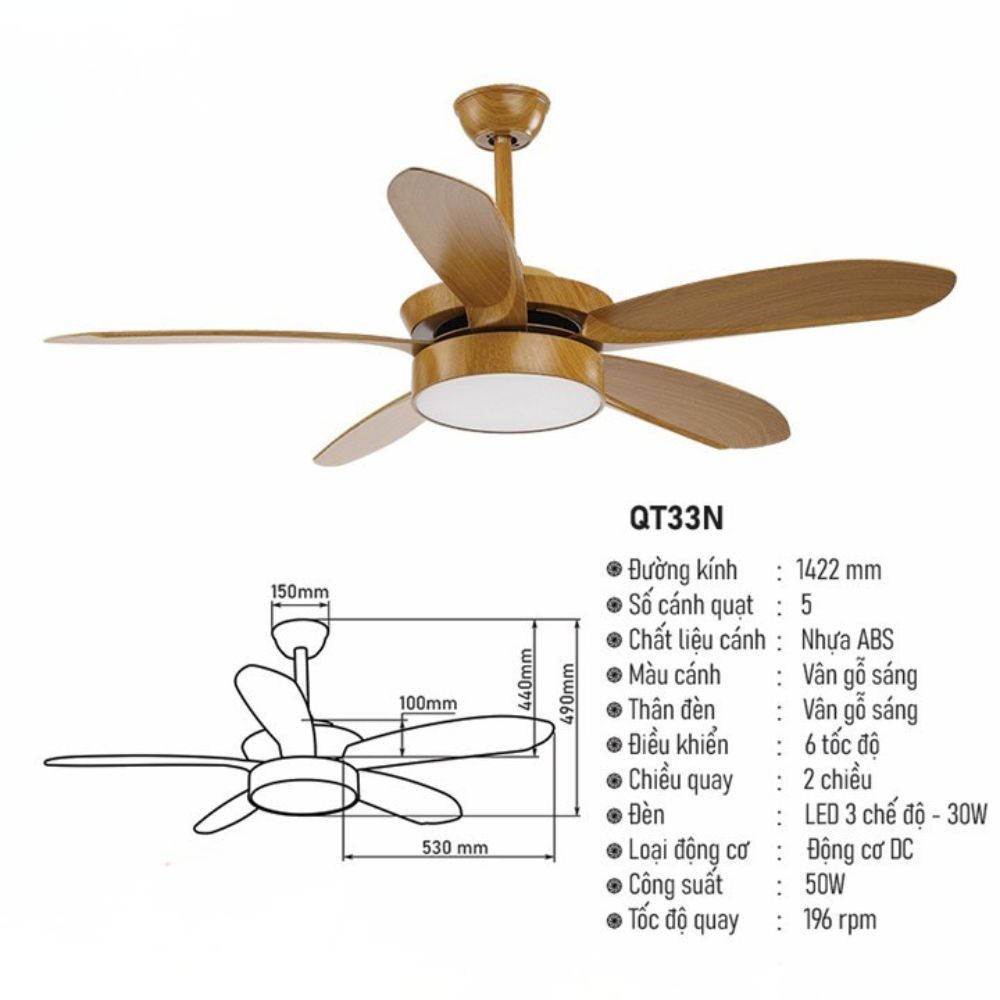 Tất cả các phiên bản trong dòng QT33 đều có remote điều khiển từ xa với 6 tốc độ gió và 2 chiều quay. Người dùng có thể điều chỉnh tốc độ hoặc đảo chiều quay để lưu thông không khí giúp không gian luôn thoáng đãng, dễ chịu. - Ứng dụng linh hoạt cho nhiều không gian