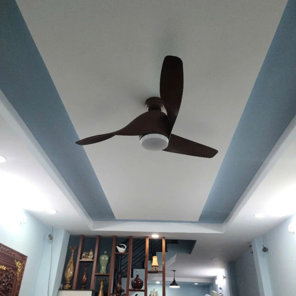 Cánh quạt được làm từ gỗ cao cấp với vân gỗ nâu đậm tự nhiên, mang lại vẻ đẹp mộc mạc nhưng không kém phần sang trọng. Chất liệu gỗ giúp quạt nhẹ, bền, chống cong vênh, đồng thời đảm bảo độ ổn định trong quá trình vận hành lâu dài.