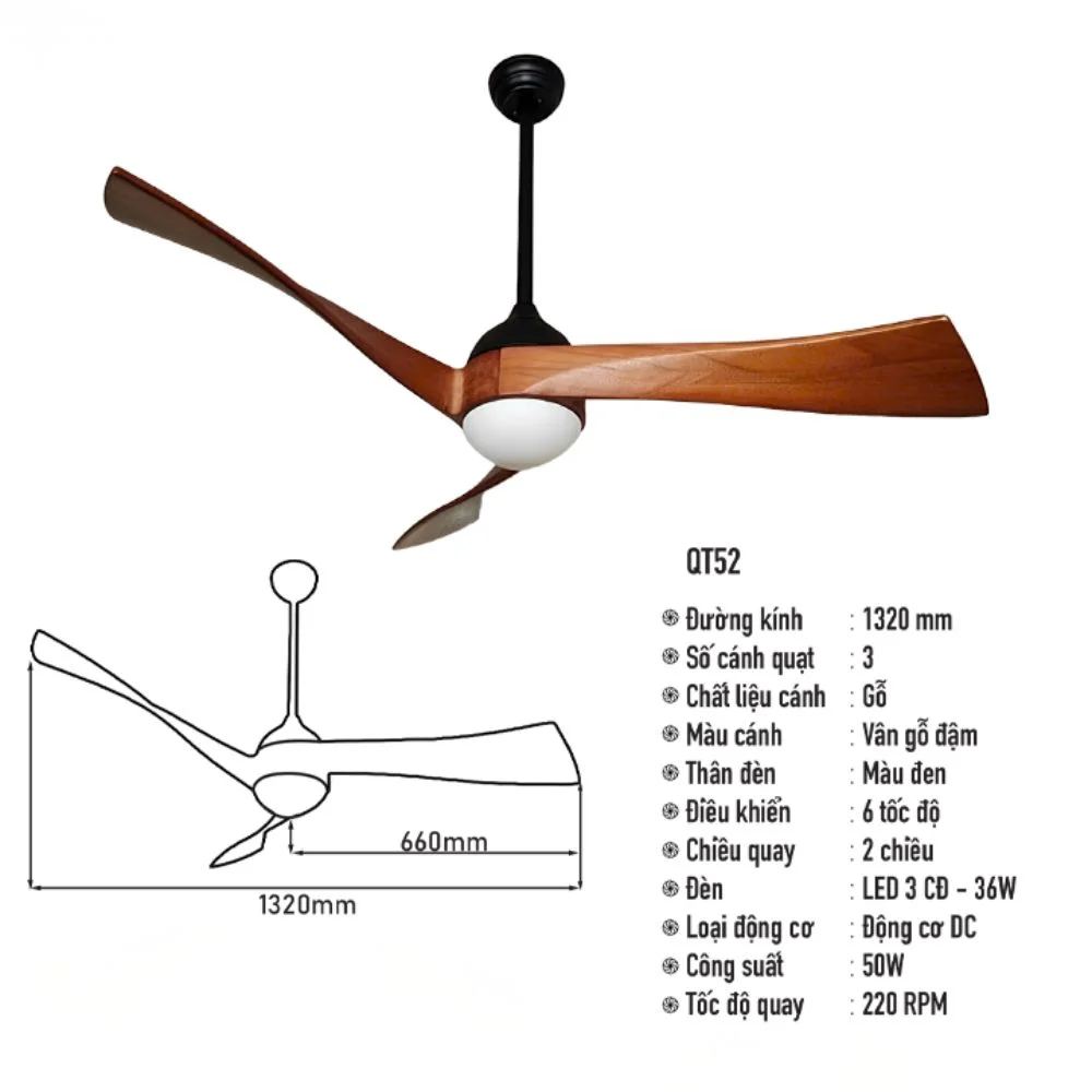 Đèn Quạt Trần Lora QT52 – Phong Cách Và Chất Lượng Hoàn Hảo