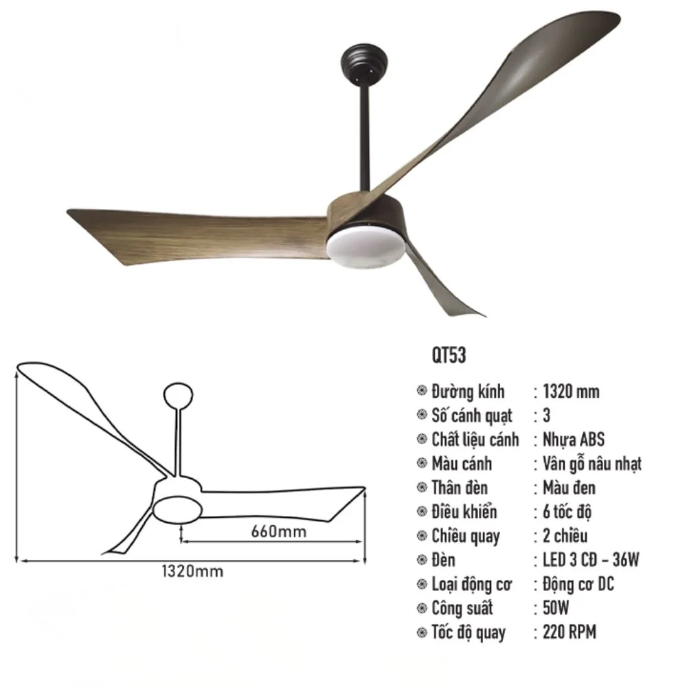Đèn Quạt Trần Solomon QT53 – Hiện Đại, Tinh Tế & Tiết Kiệm Điện Năng