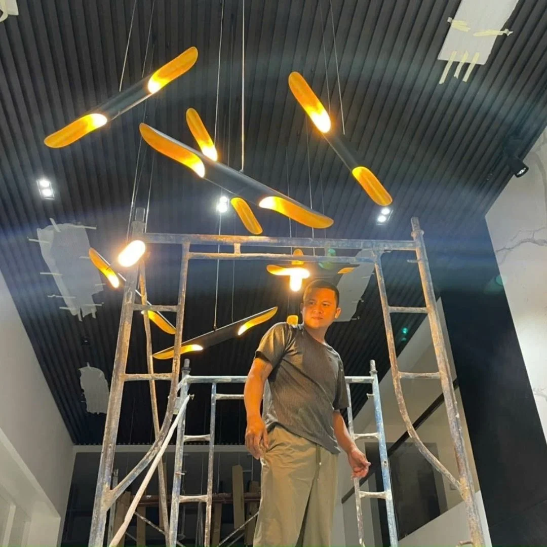 Đèn Thả Cafe TCF24 gây ấn tượng với thiết kế hình học độc đáo, kết hợp giữa phần thân đèn dài và các góc cạnh mềm mại. Các thanh kim loại uốn cong nhẹ giúp ánh sáng phát tán đều và tạo điểm nhấn cho không gian dưới đèn. Đây là mẫu đèn thích hợp với không gian hiện đại, tối giản và cần sự tinh tế trong từng chi tiết.
