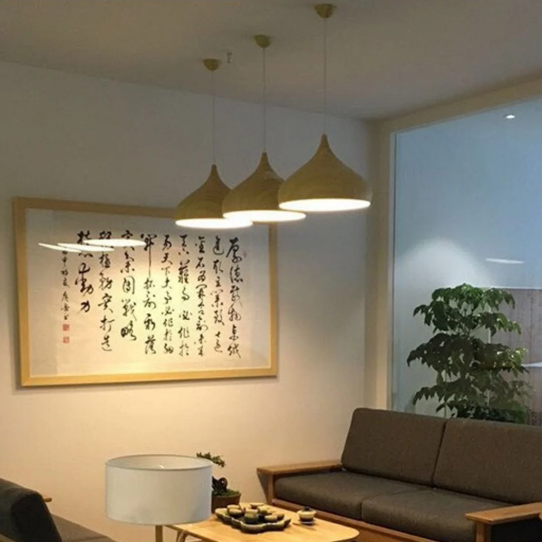 Đèn Thả Cafe TCF34 sở hữu kiểu dáng chụp đèn bo tròn mềm mại, phần thân phình nhẹ rồi thu gọn ở đỉnh, tạo cảm giác thanh thoát nhưng vẫn đủ nổi bật khi treo trong không gian. Tổng thể đèn mang vẻ đẹp hiện đại, tối giản và có phần gần gũi, phù hợp với nhiều phong cách nội thất từ quán cafe ấm cúng đến bàn ăn gia đình hoặc khu vực tiếp khách. Tông màu giả gỗ ấm áp giúp sản phẩm tạo cảm giác dịu mắt, góp phần làm không gian trở nên dễ chịu và có chiều sâu hơn.