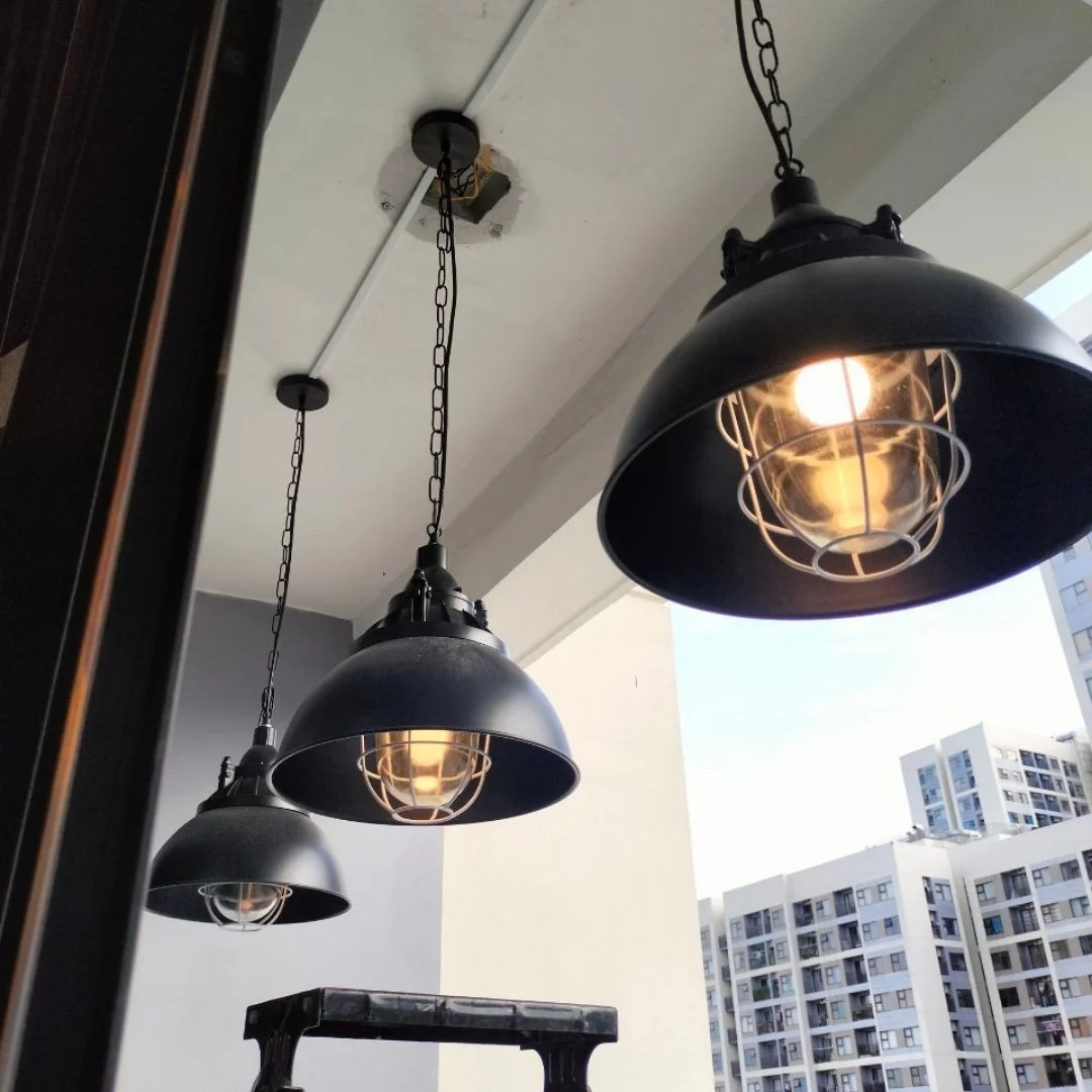 Đèn Thả Cafe TCF91 có kiểu dáng chụp đèn tròn rộng, phần thân phía trên được thiết kế chắc gọn, kết hợp cùng chi tiết chụp sâu tạo cảm giác mạnh mẽ và đậm chất công nghiệp. Bên trong là lớp lồng bảo vệ bóng đèn, giúp tổng thể sản phẩm trông cá tính hơn, đồng thời tạo chiều sâu cho ánh sáng khi đèn được thắp lên. Tông màu đen chủ đạo mang lại cảm giác sang, trầm và dễ kết hợp với nhiều không gian như quán cafe, nhà hàng, bàn ăn hoặc khu vực quầy bar.