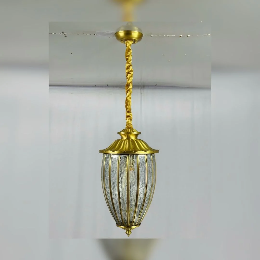 Đèn Thả Đồng TD41 sở hữu kiểu dáng thuôn dài thanh lịch, chao đèn được tạo hình như một chiếc lồng châu Âu cổ, mang nét mềm mại nhưng vẫn toát lên sự kiêu hãnh. Phần khung đồng được gia công với nhiều đường nét uốn cong, gợn nhẹ tạo nên vẻ sang trọng và tinh xảo. Bề mặt đồng màu vàng cổ ánh nhẹ, tạo cảm giác ấm áp khi kết hợp cùng ánh sáng vàng.
