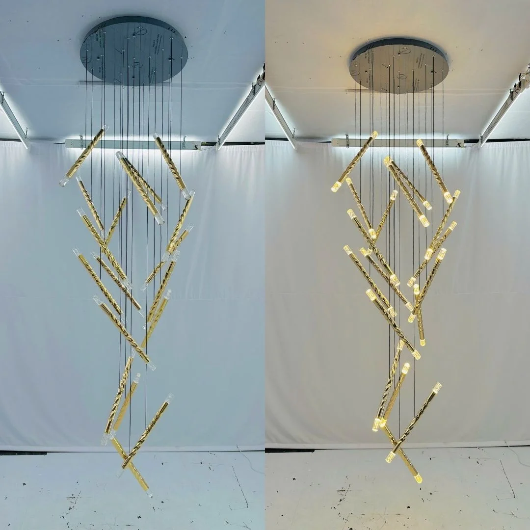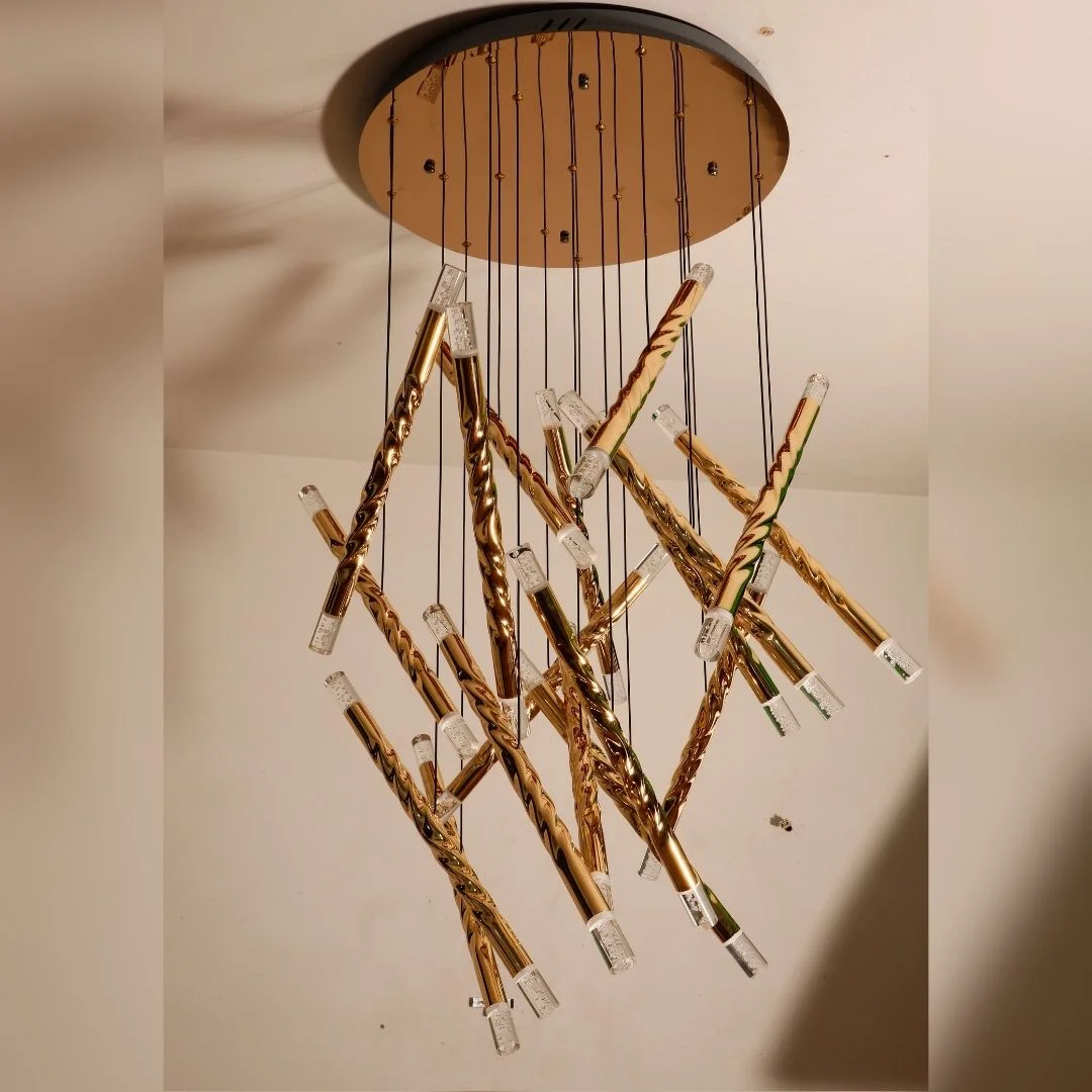 Đèn Thả Hiện Đại THD131 sở hữu kiểu dáng độc đáo với các thanh kim loại uốn lượn, tạo hình dáng lạ mắt như những sợi dây vặn xoắn. Sự kết hợp giữa các thanh đèn sáng và màu vàng kim tạo nên một tổng thể sang trọng, thanh thoát. Dù ở bất kỳ không gian nào, sản phẩm vẫn nổi bật và tạo cảm giác tinh tế, hiện đại.