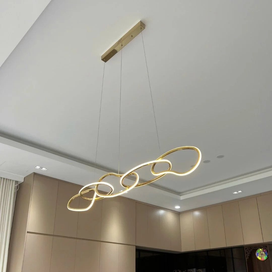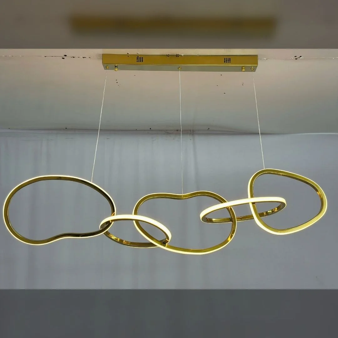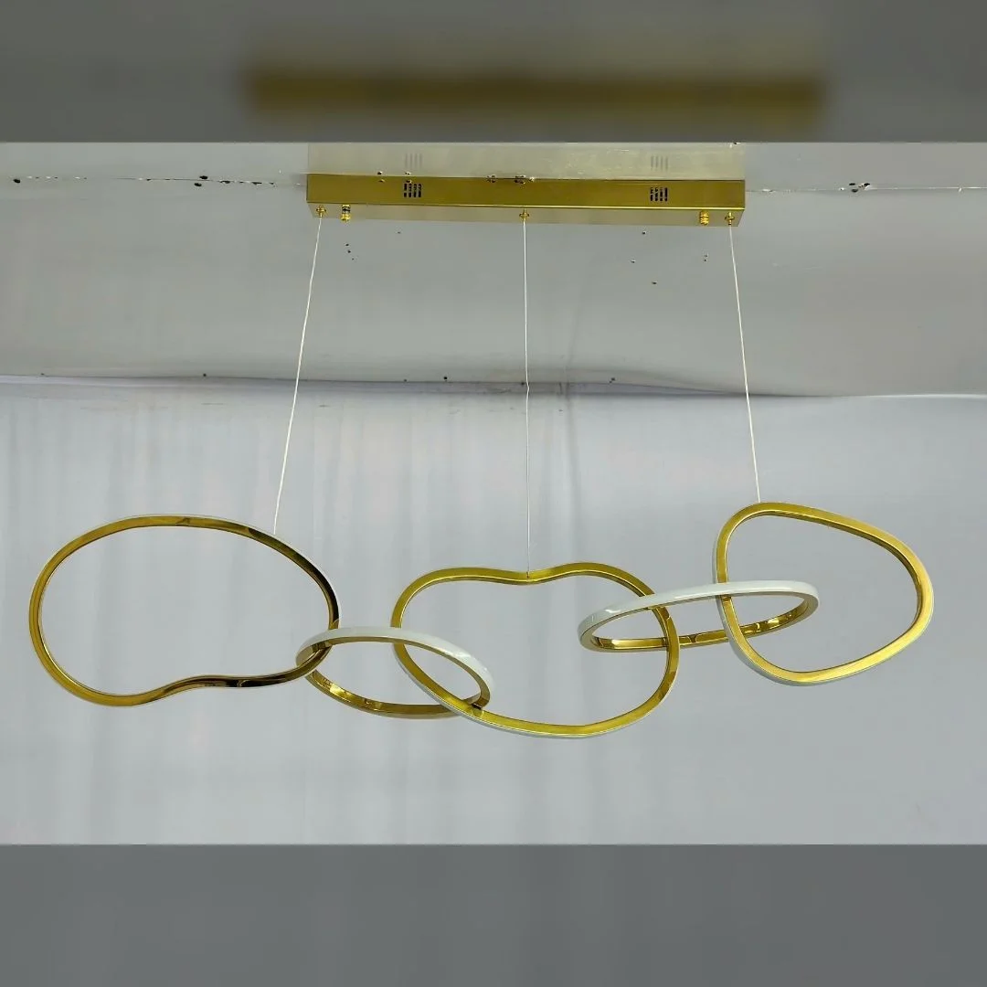 Đèn thả hiện đại THD602 sở hữu thiết kế thanh thoát với những đường cong mềm mại, tạo cảm giác như những sợi dây sáng chảy theo một đường uyển chuyển. Với hai phiên bản có chiều dài khác nhau (L1200 và L1500), sản phẩm dễ dàng phù hợp với không gian từ nhỏ đến lớn. Màu vàng sáng bóng từ inox xi vàng không chỉ mang lại vẻ đẹp sang trọng mà còn tăng thêm sự bền bỉ cho sản phẩm, giúp đèn thả dễ dàng phối hợp với mọi phong cách trang trí nội thất hiện đại.