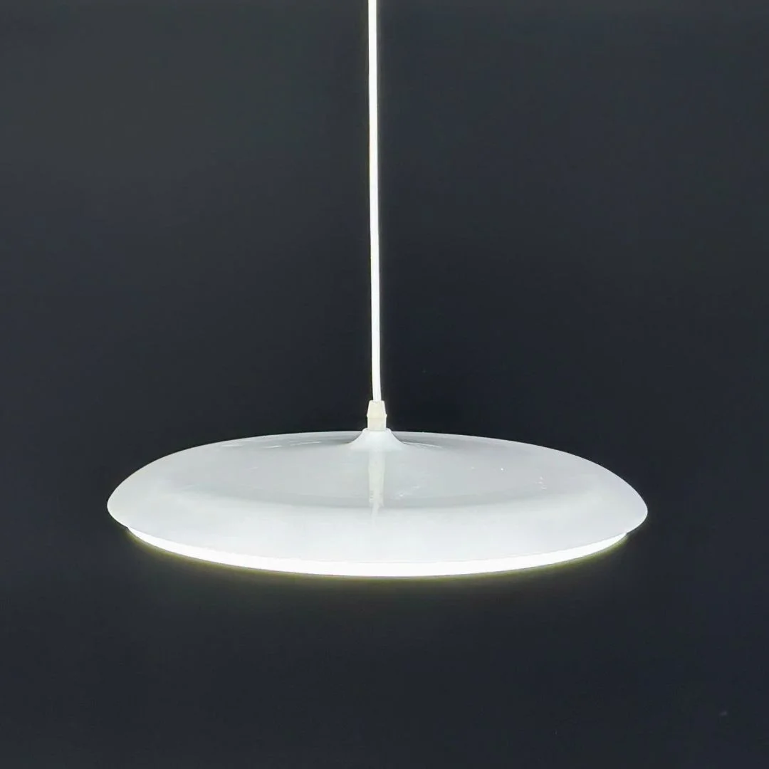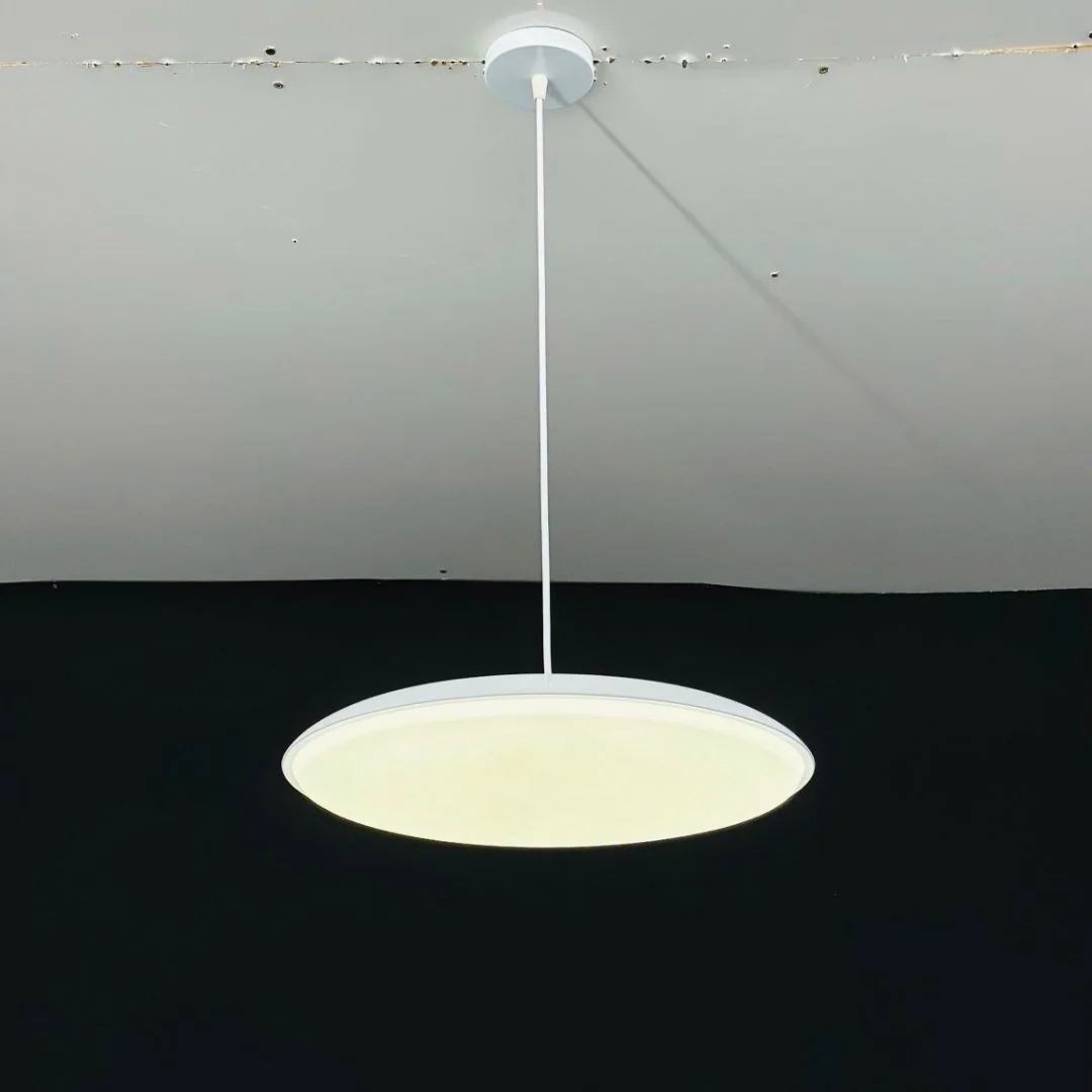 Đèn thả hiện đại THD94 mang dáng đĩa tròn phẳng với viền mảnh, thân màu trắng tinh gọn tạo cảm giác nhẹ và thoáng trần. Bề dày chỉ 4 cm giúp tổng thể thanh thoát, không “đè” trần thấp. Bề mặt mica tán sáng phủ kín cho ánh sáng đều, êm mắt, hạn chế chói lóa khi ngồi trực diện. Khung kim loại sơn tĩnh điện bền màu, chống trầy xước và dễ vệ sinh – lý tưởng cho khu vực bếp, ăn uống hay quầy bar cần sự sạch sẽ, chắc chắn.