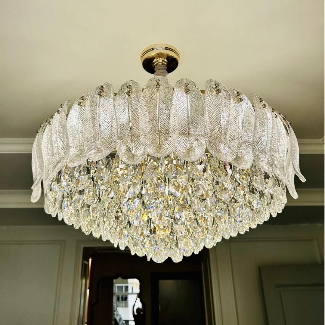 • Chất liệu pha lê K9 và thân xi cao cấp giúp đèn bền bỉ, dùng lâu vẫn giữ được vẻ đẹp sáng sạch.
