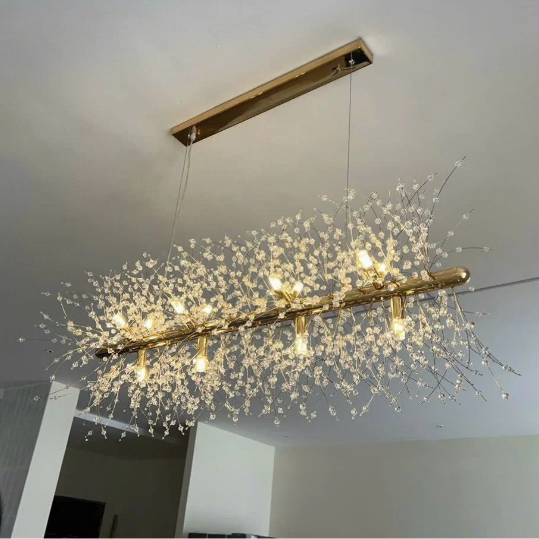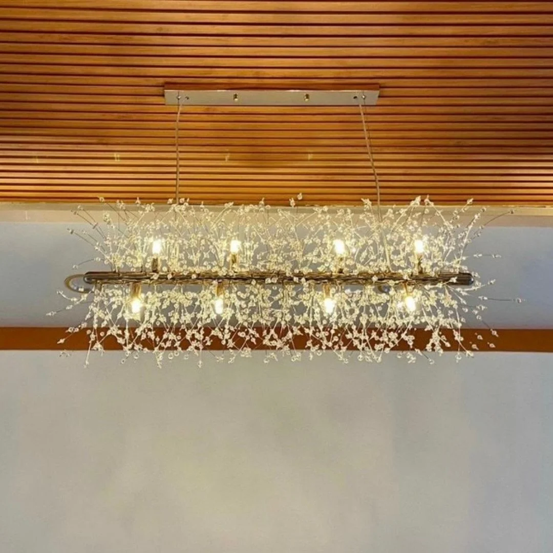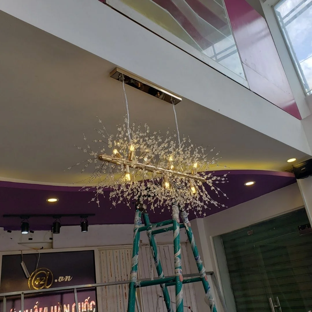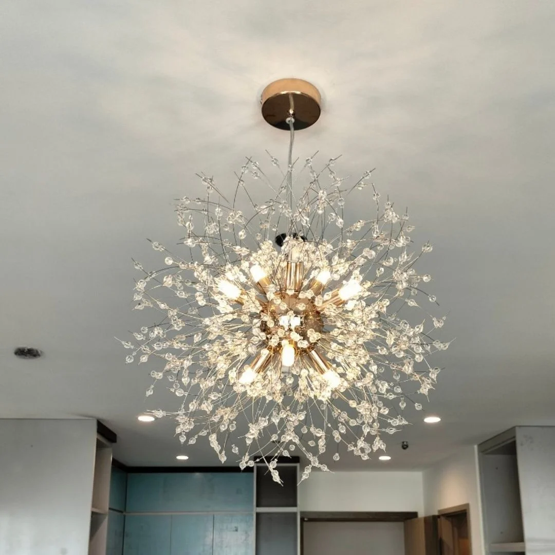 - Chất liệu bền bỉ, an toàn: Pha lê cao cấp và khung kim loại chắc chắn, đảm bảo độ bền và sự ổn định.