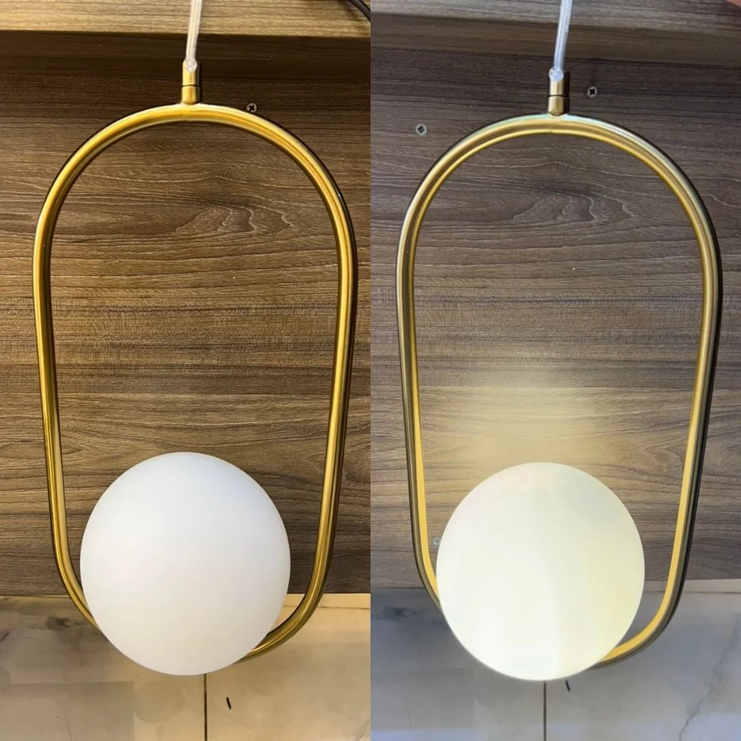 Sản phẩm sử dụng chao thủy tinh, mang lại hiệu ứng ánh sáng dịu, mềm và tăng cảm giác nhẹ mắt khi sử dụng trong không gian sống. Chất liệu này giúp đèn giữ được vẻ đẹp thanh lịch, sáng sạch và phù hợp với nhiều kiểu bố trí khác nhau. Khi kết hợp với phần khung kim loại mảnh và chuẩn đui E27 phổ biến, bộ đèn không chỉ đẹp về mặt hình thức mà còn thuận tiện trong quá trình thay bóng, dễ dùng cho cả nhu cầu chiếu sáng lẫn trang trí hằng ngày.