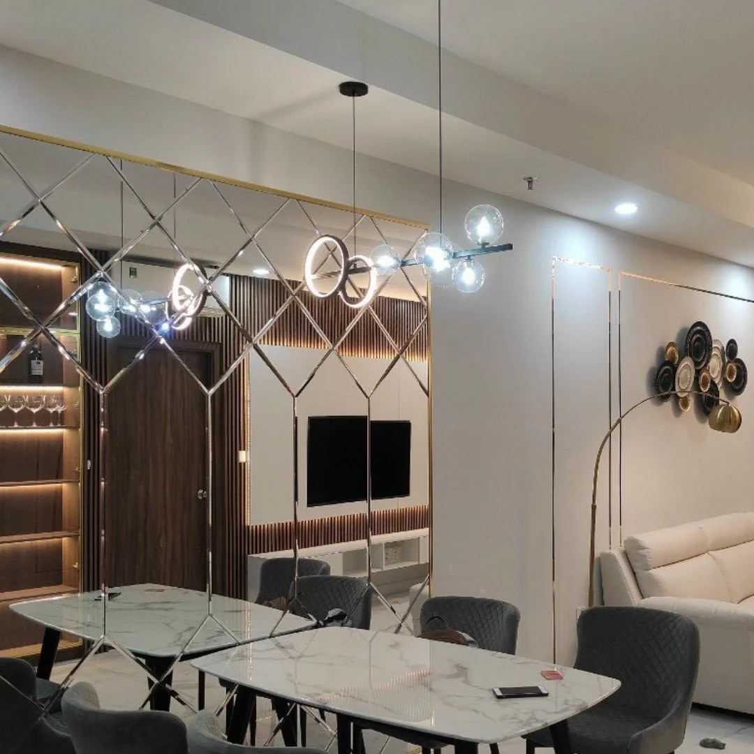 • Thiết kế kết hợp giữa bóng tròn và vòng sáng giúp không gian có điểm nhấn rõ ràng hơn, tạo cảm giác hiện đại và có gu hơn.