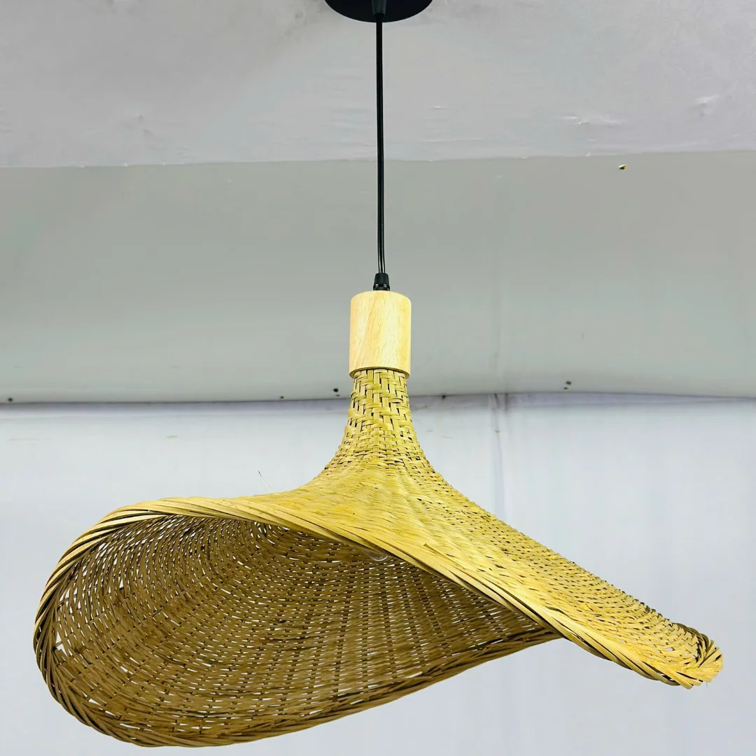 Đèn Thả Thiết Kế TTK200 gây ấn tượng mạnh nhờ dáng chao uốn cong như một dải lụa, tạo cảm giác bay bổng và rất “nghệ”. Bề mặt đan thoáng giúp chiếc đèn nhìn nhẹ nhàng khi treo lên trần, không làm không gian bị nặng hoặc rối.