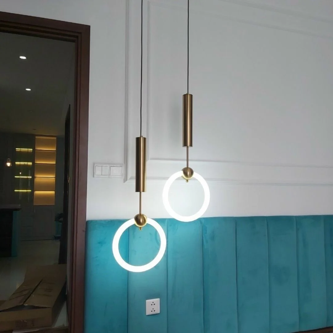 Đèn Thả Thiết Kế TTK221 gây ấn tượng bởi thiết kế tối giản nhưng không đơn điệu. Phần thân đèn dạng ống thẳng kéo dài từ trần xuống, kết hợp cùng chi tiết cầu kim loại và vòng sáng tròn phía dưới tạo nên tổng thể rất hiện đại, cân đối và có điểm nhận diện rõ ràng. Chính cấu trúc này giúp sản phẩm nhìn thanh thoát, nhẹ mắt nhưng vẫn đủ nổi bật để trở thành điểm nhấn trong không gian. Thiết kế vòng tròn phát sáng cũng mang lại cảm giác mềm mại hơn so với các mẫu đèn thả hình khối thông thường, vì vậy rất phù hợp với căn hộ hiện đại, quầy bar, bàn ăn nhỏ, góc sofa, hành lang hoặc khu vực đầu giường cần một mẫu đèn trang trí tinh gọn mà tinh tế.