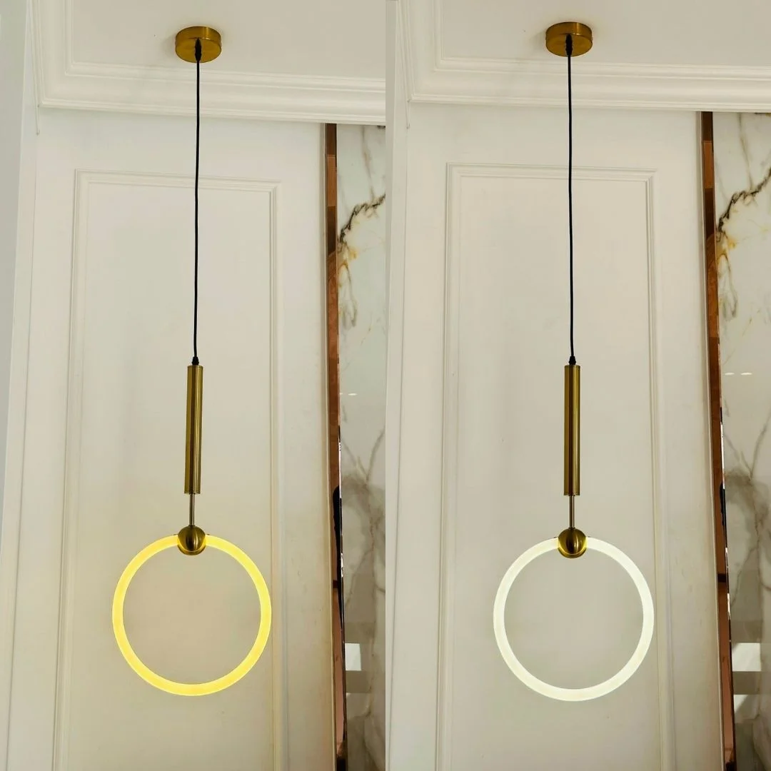 Phần thân đèn sử dụng hợp kim mạ vàng, đây là chất liệu phù hợp với các mẫu đèn thả hiện đại nhờ bề mặt sáng đẹp, tăng cảm giác sang trọng và dễ kết hợp với nhiều vật liệu nội thất như gỗ, đá, kính hay kim loại. Lớp mạ vàng giúp sản phẩm có chiều sâu thẩm mỹ rõ hơn, đồng thời tạo cảm giác cao cấp ngay cả khi chưa bật sáng. Khi kết hợp cùng nguồn LED 3 chế độ, mẫu đèn không chỉ đẹp về hình thức mà còn linh hoạt hơn trong trải nghiệm sử dụng. Người dùng có thể thay đổi sắc độ ánh sáng theo nhu cầu thực tế, từ đó giúp không gian vừa đáp ứng tốt công năng chiếu sáng, vừa giữ được sự dễ chịu và hài hòa trong sinh hoạt hằng ngày.