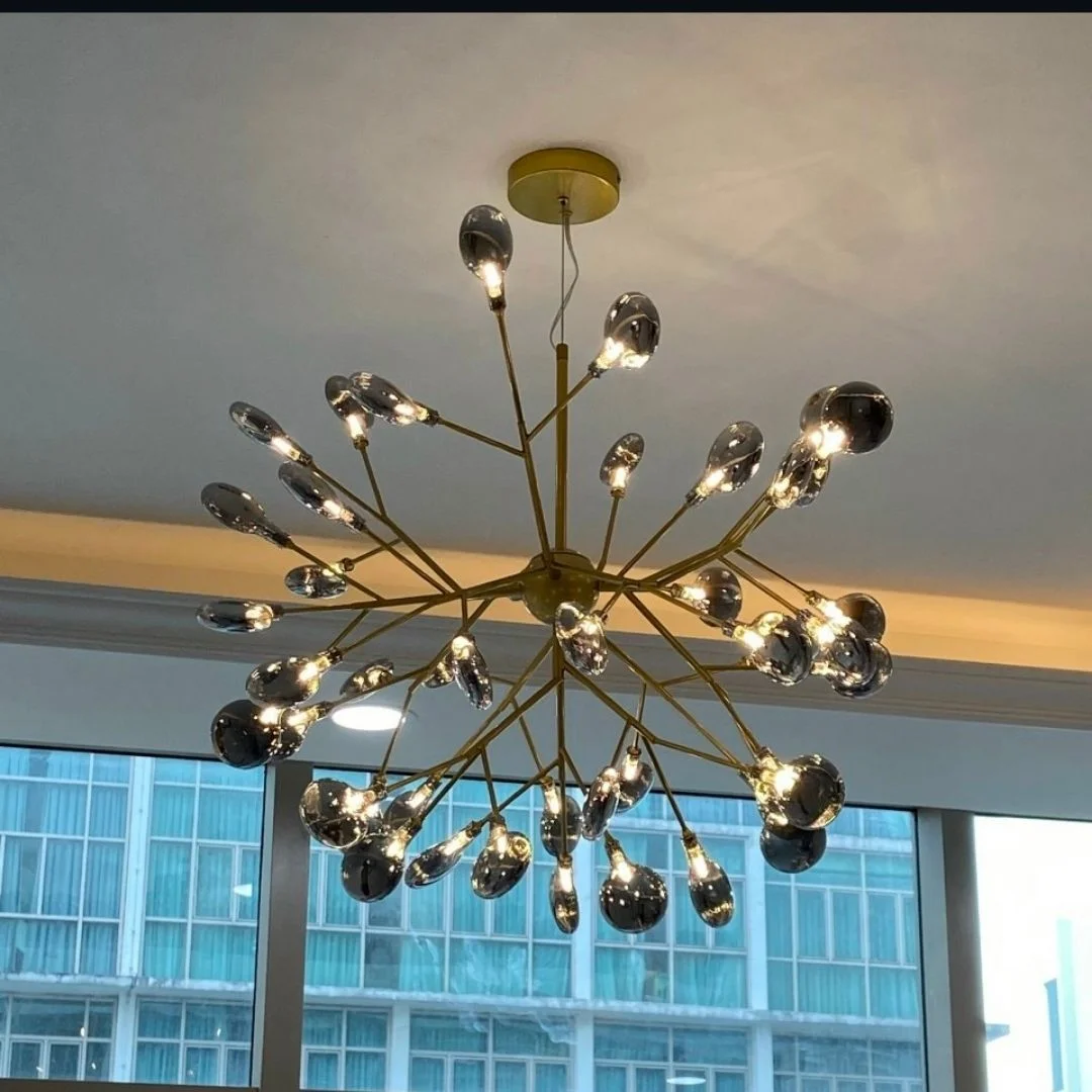 Đèn Thả Thiết Kế TTKHERA45DENTRON sở hữu kiểu dáng ấn tượng với phần khung tròn làm trục chính, từ đó các nhánh đèn tỏa ra tự nhiên như một cụm trang trí nghệ thuật đang lơ lửng trong không gian. Các chao đèn được bố trí có chủ đích nhưng vẫn tạo cảm giác mềm mại, sinh động, giúp tổng thể trở nên thanh thoát và thu hút khi nhìn từ nhiều góc độ. Tông thân đèn màu tối làm nổi bật phần chao, đồng thời tạo nên vẻ hiện đại, sang trọng và dễ trở thành tâm điểm trong phòng khách, khu vực bàn ăn, quầy tiếp đón, showroom hoặc những không gian nội thất theo phong cách tinh tế, cao cấp.