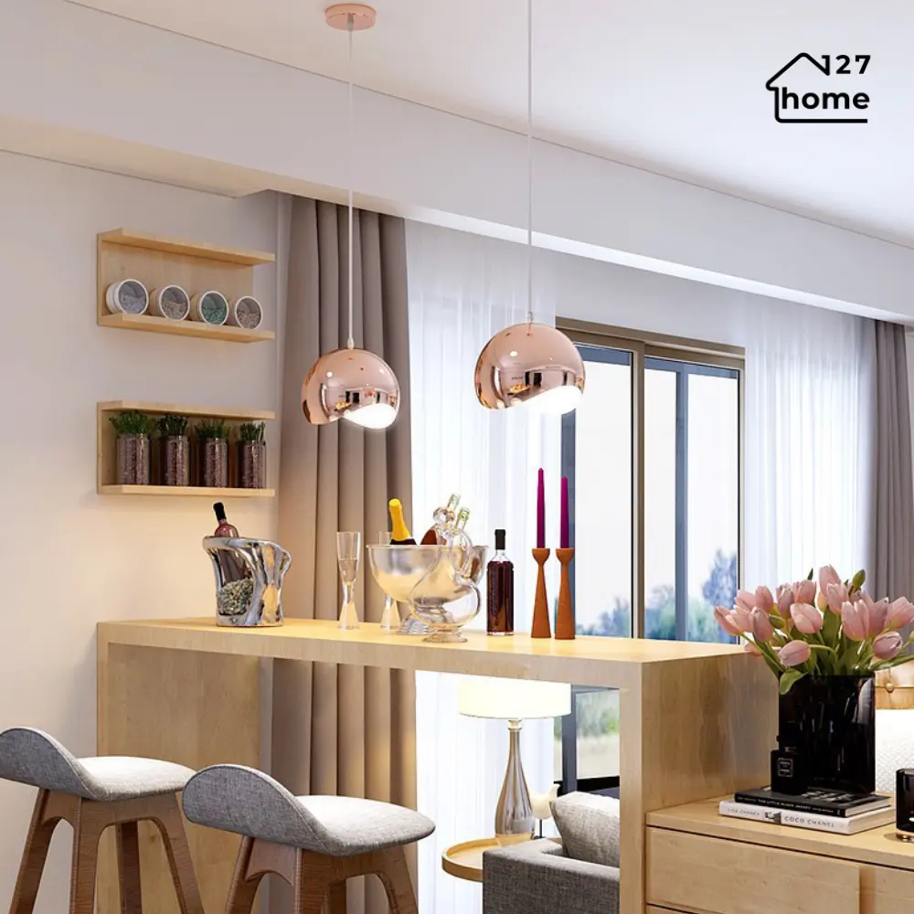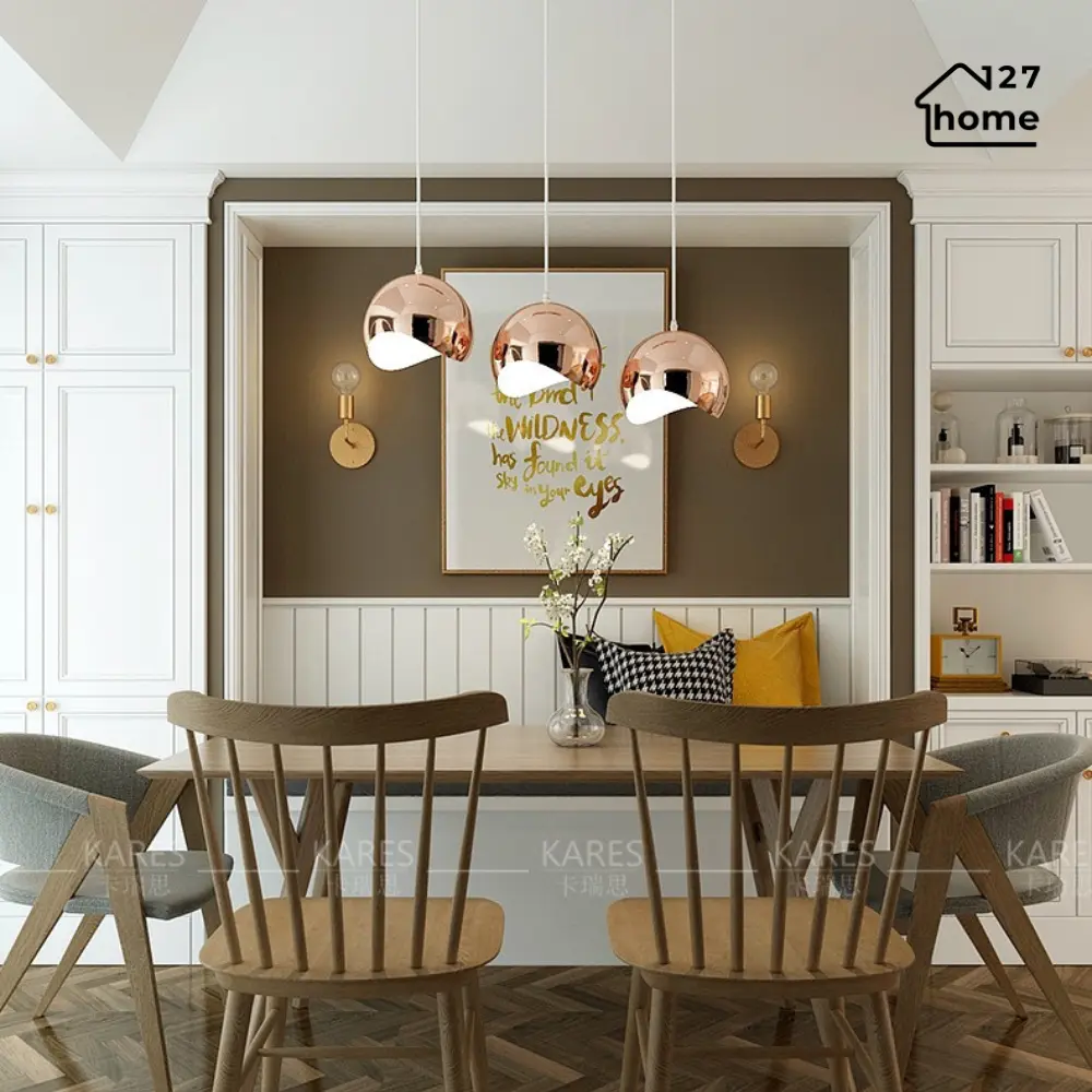 Trang bị bóng E27 phổ biến, đèn mang đến ánh sáng dịu mắt, lan tỏa đồng đều, vừa tiết kiệm điện năng vừa thân thiện với mắt. Đây là lựa chọn lý tưởng khi dùng làm đèn thả bàn ăn, tạo cảm giác ấm cúng, hoặc đèn trang trí cho phòng khách, café với ánh sáng nhẹ nhàng, gần gũi.