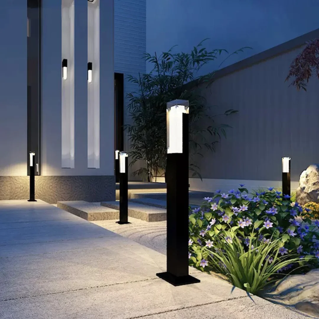 Đèn Trụ DT144 sở hữu thiết kế thanh mảnh, tối giản và rất đúng tinh thần ngoại thất hiện đại. Phần thân đèn dạng trụ vuông nhỏ, kéo cao theo phương đứng nên tạo cảm giác gọn mắt, không chiếm nhiều diện tích thị giác nhưng vẫn đủ hiện diện để làm rõ nhịp điệu cho lối đi hoặc khoảng sân. Điểm nổi bật nằm ở phần đầu đèn sáng màu, được xử lý dạng khối đứng, giúp tổng thể có sự chuyển tiếp tinh tế giữa thân tối màu và vùng phát sáng phía trên. Khi bố trí một hàng dọc theo đường dạo hoặc khu vực tiểu cảnh, mẫu đèn này tạo cảm giác đồng bộ, sạch và khá sang.