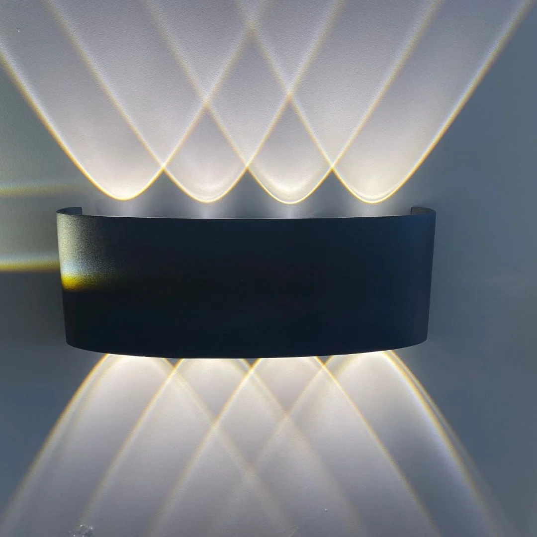 Đèn Tường Ngoài Trời VNT2222 có kiểu dáng khối cong nhẹ, ôm sát tường, mặt trước phẳng tạo cảm giác rất gọn gàng và hiện đại. Khi bật sáng, các khe sáng trên – dưới, hoặc nhiều điểm sáng ở đáy đèn (với mẫu T3, T4) tạo thành những tia sáng tam giác và dải sáng đẹp mắt trên mảng tường. Nhờ đó, bức tường trở nên có chiều sâu và sinh động hơn, đặc biệt khi lắp dọc lối đi, ban công hoặc khu vực mặt tiền.