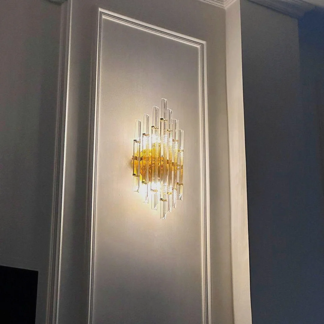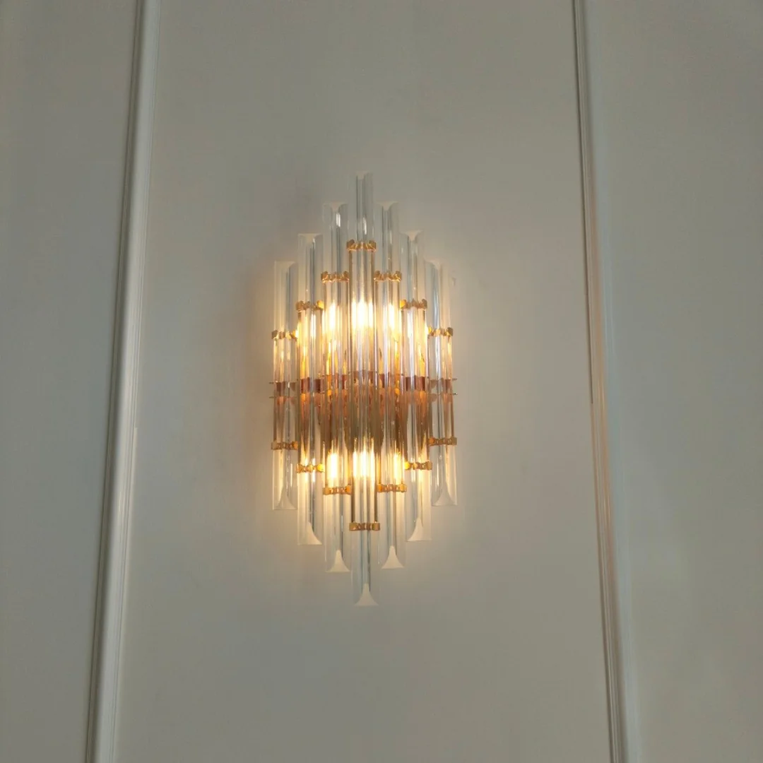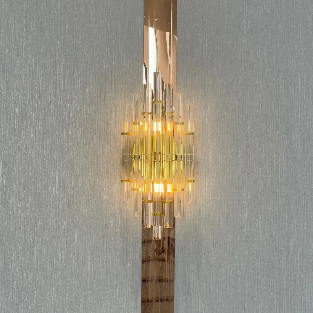 Đèn Tường Pha Lê VPL02 có thiết kế dạng đứng với bố cục đối xứng rất đẹp mắt. Các thanh pha lê được sắp xếp lớp lang, tạo thành tổng thể giống một khối hình học kéo dài theo chiều dọc, vừa mềm mại vừa nổi bật. Khi lắp lên tường, mẫu đèn này mang lại cảm giác sang hơn, cao hơn và giúp bề mặt tường bớt đơn điệu rõ rệt.