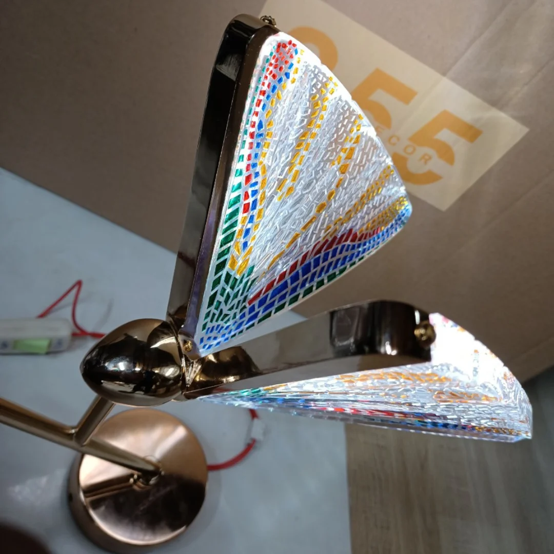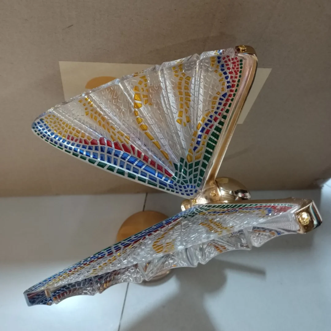 Đèn Tường Pha Lê VPL110 gây ấn tượng ngay từ ánh nhìn đầu tiên nhờ thiết kế mô phỏng cánh quạt hoặc cánh bướm xòe rộng, tạo cảm giác mềm mại và giàu tính trang trí. Phần mặt đèn có nhiều mảng màu chuyển sắc hài hòa, giúp sản phẩm không chỉ là một nguồn sáng mà còn giống như một chi tiết decor nghệ thuật treo tường. Với kích thước gọn, mẫu đèn này đặc biệt phù hợp cho những khu vực cần điểm nhấn như góc sofa, hành lang nhỏ, phòng ngủ, khu vực đọc sách hoặc vách trang trí.