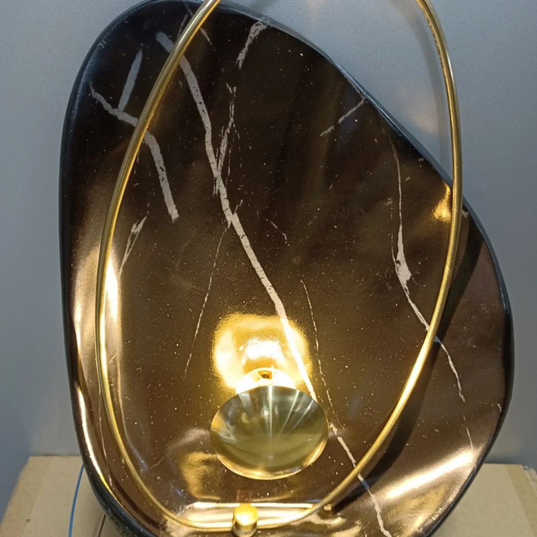 Phần thân đèn được làm từ sứ chắc chắn, chống ẩm và bền màu theo thời gian. Khung hợp kim xi vàng không chỉ tăng độ chắc chắn mà còn nâng tầm vẻ sang trọng, hiện đại cho mẫu đèn trang trí treo tường này.